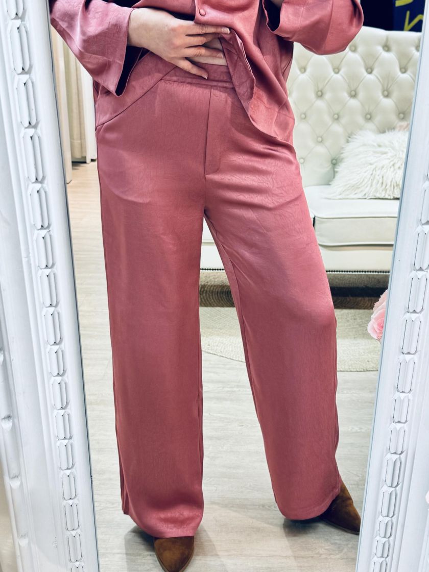 Samaa sarjaa löytyy pusero, mutta toimii mainiosti myös esimerkiksi neuleiden kanssa. A-VIEW housut kaunista, tukevaa ja hieman ryppypintaista satiinia. Housussa on korkea joustovyötärö ja reilu leveä lahje. Mallissa on viistotaskut. Tarkistathan mitat!