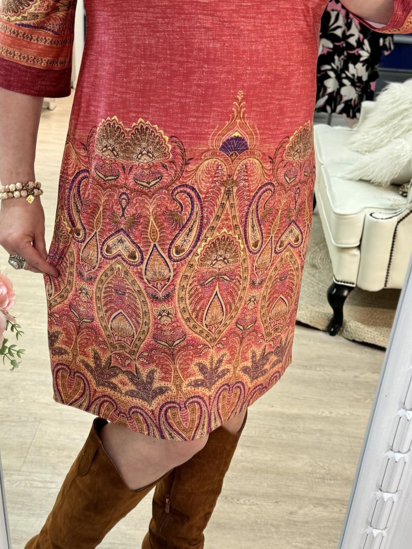 Ana Alcazar paisley kuviollinen mekko ihanan liukaspintaista ja joustavaa trikoota. Edessä pääntiellä upeat helmikoristelut. Malli on kauniin linjakas. Tarkistathan mitat.