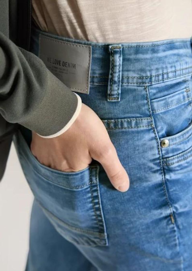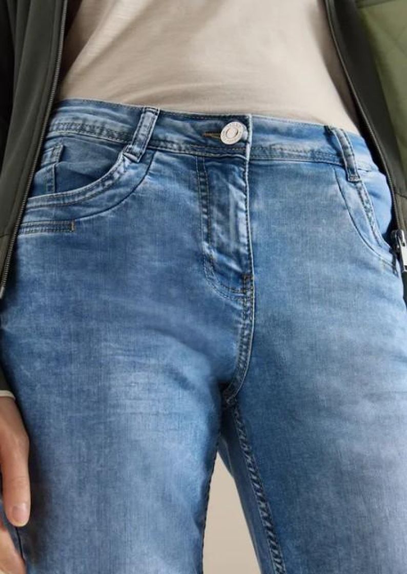Cecil mukavan pehmeät vajaamittaiset joustofarkut makealla kulutuspesulla. Kivaa ilmettä antaa vaaleat tikkaukset. Mallissa normaali vyötärönkorkeus ja kapeneva lahje. 29 koko vastaa noin 40-42 kokoa, tarkistathan mitat. Makeat kevät/kesäfarkut!