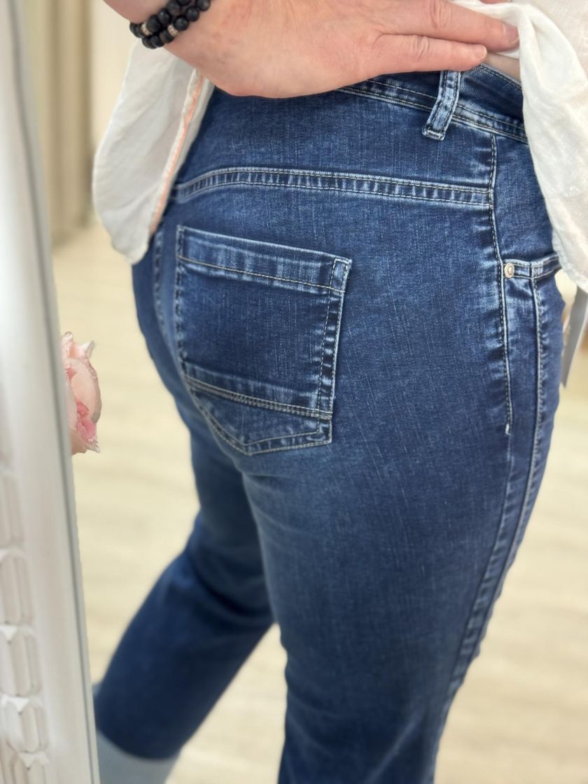 Cecil supermukavat nilkkamittaset joustofarkut makealla kulutuspesulla. Kivaa ilmettä antaa tikkaukset ja lahkeensuussa raitakangas. Edessä taskut ja takana. Vyötärönkorkeus on normaali ja kapeneva lahje. 31 koko vastaa noin 42 kokoa, tarkistathan mitat.