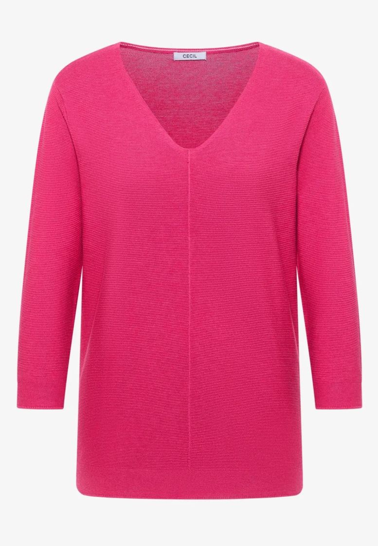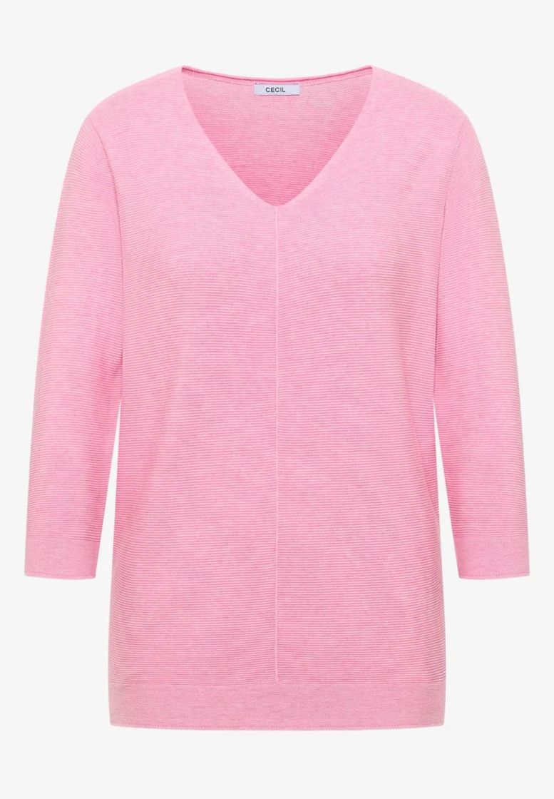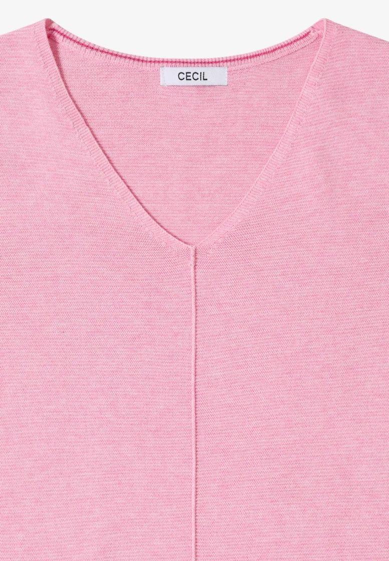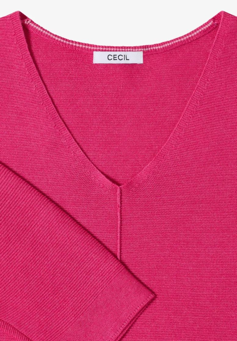 Cecil neulepusero ohutta ja pehmeää neulosta. V-pääntie ja kauniit pienet yksityiskohdat antaa tälle mallille ilmettä. Edestä löytyy pystysauma ja helma sekä hihansuut on huoliteltu sileällä neuloksella. Hiha on kevyesti vajaamittainen. Materiaalina supermukava puuvilla-viskoosi kauniilla struktuuripinnalla.
