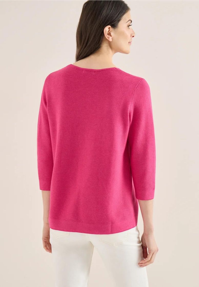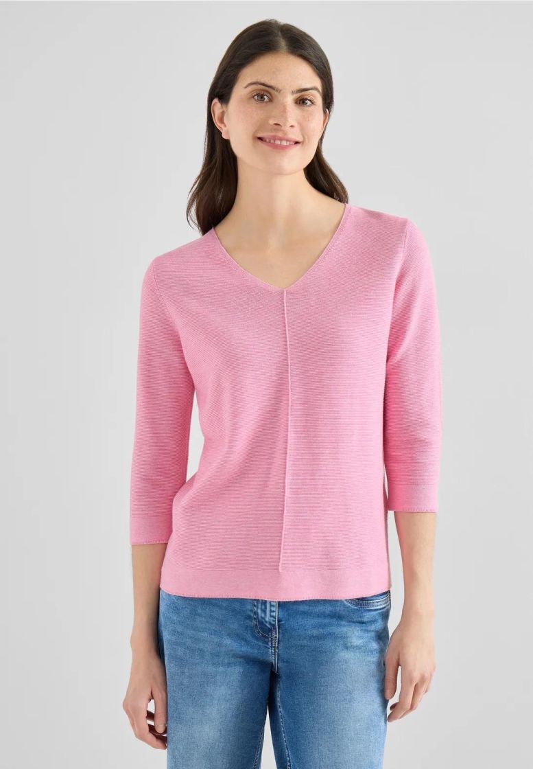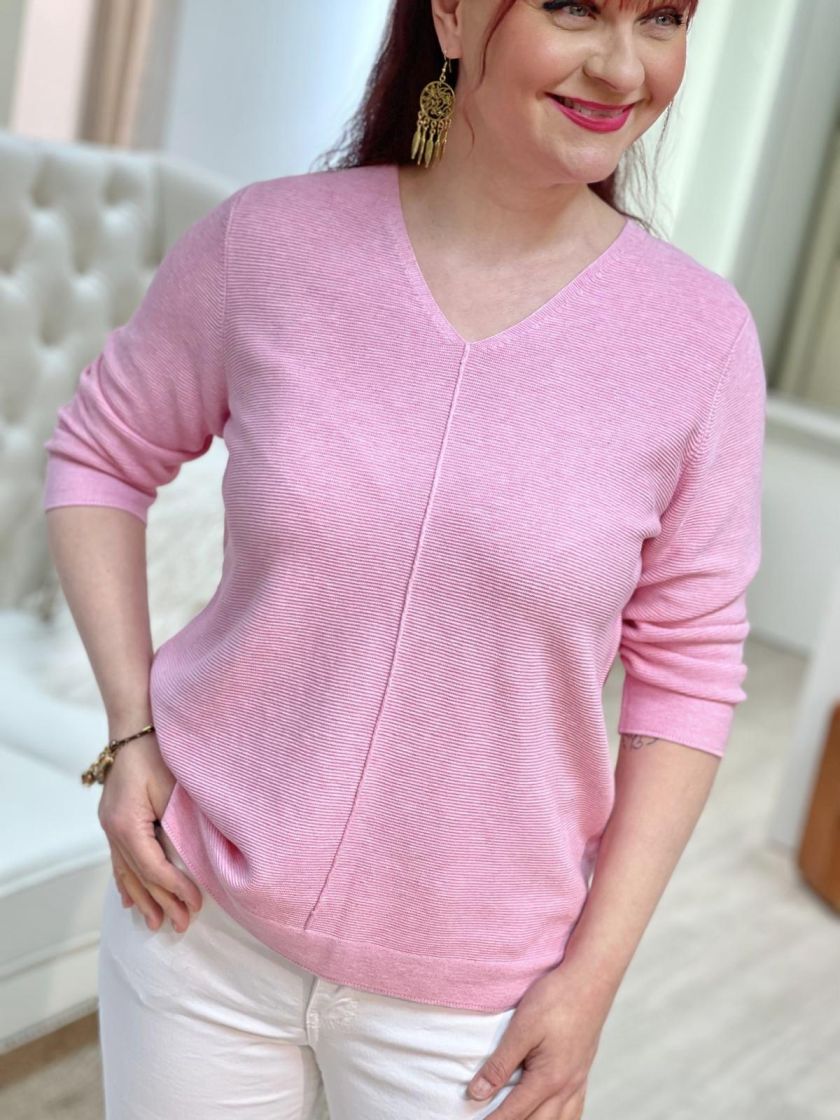 Ihanan pehmeä, luonnonkuidut toimii läpi vuoden! Cecil neulepusero ohutta ja pehmeää neulosta. V-pääntie ja kauniit pienet yksityiskohdat antaa tälle mallille ilmettä. Edestä löytyy pystysauma ja helma sekä hihansuut on huoliteltu sileällä neuloksella. Hiha on kevyesti vajaamittainen. Materiaalina supermukava puuvilla-viskoosi kauniilla struktuuripinnalla.