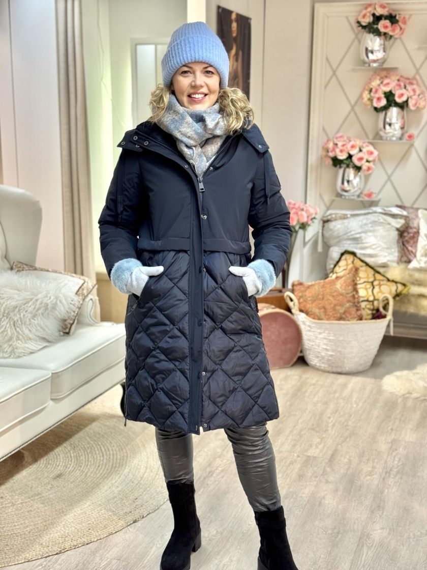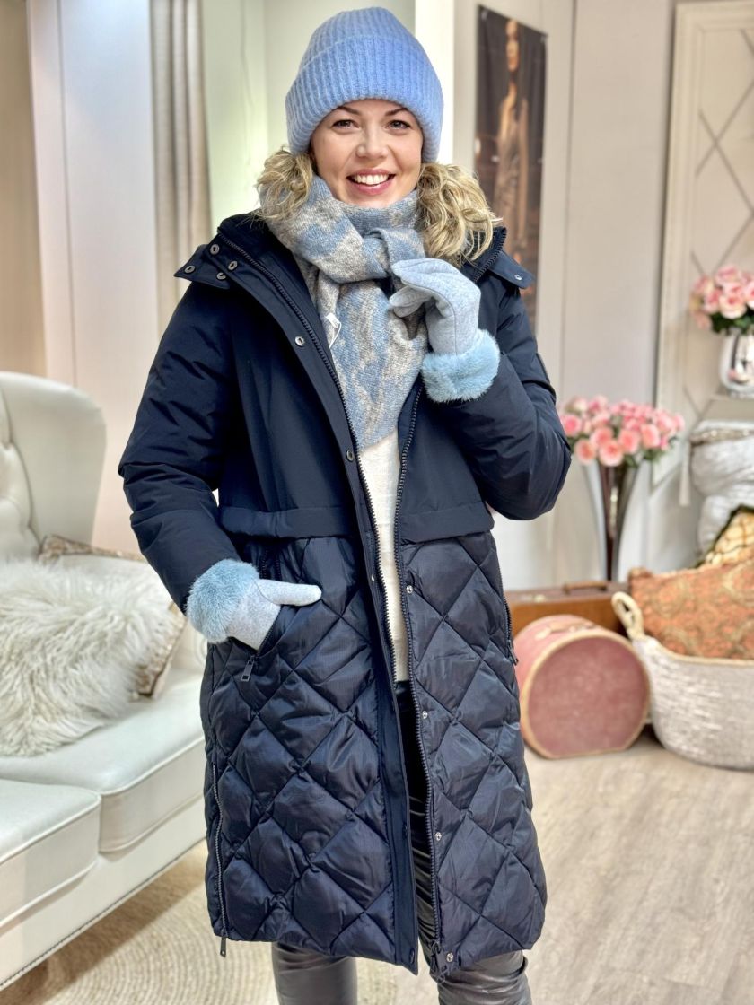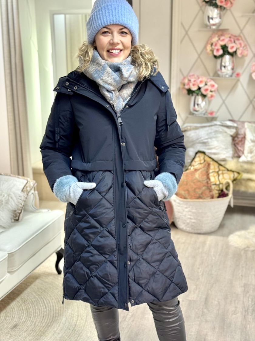 Cecil toppatakki kivoilla yksityiskohdilla. Yläosa ja hihat on mattapintaista parkahenkistä kangasta. Alaosa on siftaavaa tikattua kangasta. Vetoketju aukeaa kätevästi kahteen suuntaan ja taskuissa on myös reilut vetoketjut. Hihansuun pitää lämpimänä resori. Mallissa on irrotettava huppu kiristysnauhoilla ja helmassa vetoketjuhalkiot sivuilla. Mitoitus on reilu ja XS vastaa noin 38 kokoa, tarkistathan mitat.
