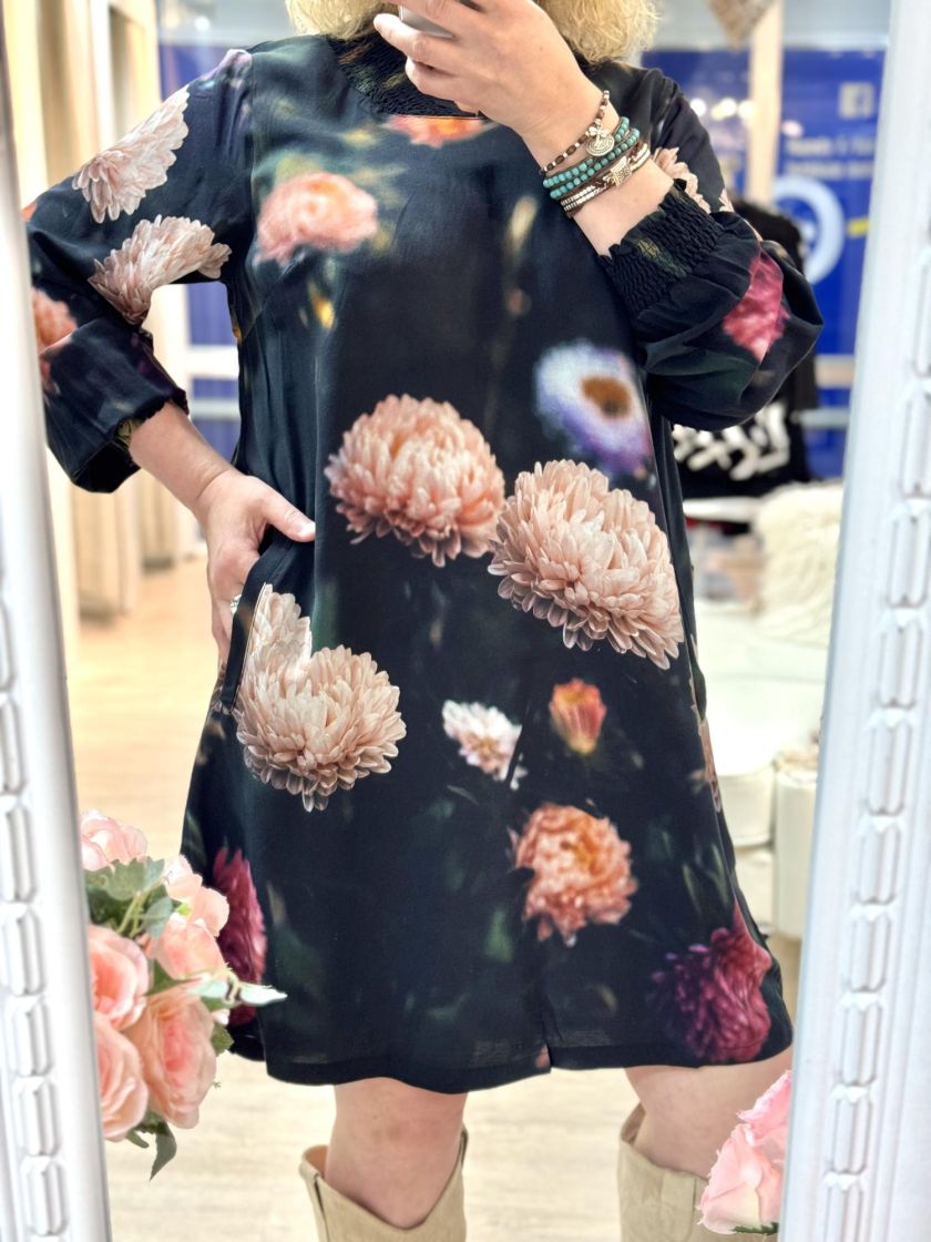 Plusmallistoa Gozzip tunikamekko ihanan pehmeää viskoosia. Mallissa on smokkirypytetty v-pääntie, hihansuussa kuminauharesorit ja takana reilu laskos. Malli on suora ja väljä, tarkistathan mitat.
