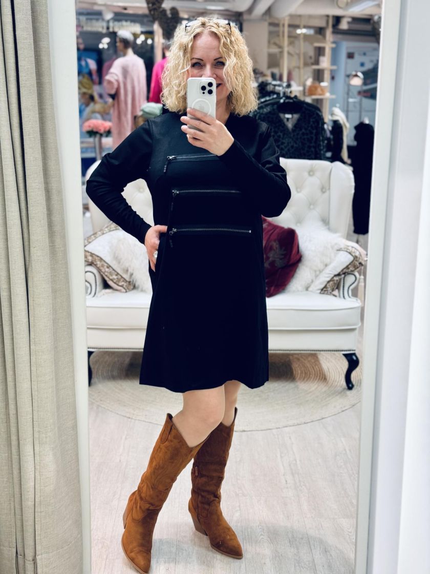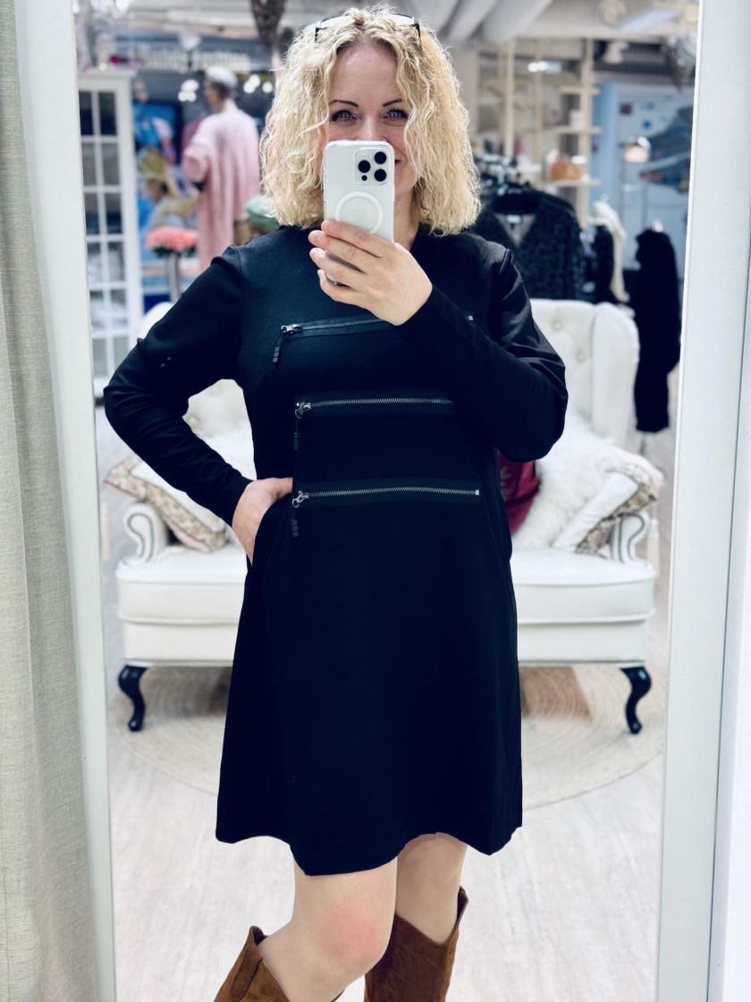 Plusmallistoa Gozzip makean räyhäkäs tunika/mekko mukavaa jerseytä. Edestä löytyy näyttävät koristevetoketjut ja kätevät taskut. Tunikassa on v-pääntie ja a-linjainen malli. Materiaali on laadukasta, joustavaa ja todella miellyttävää puuvillasekoitetta. reilumpi mitoitus, tarkistathan mitat.