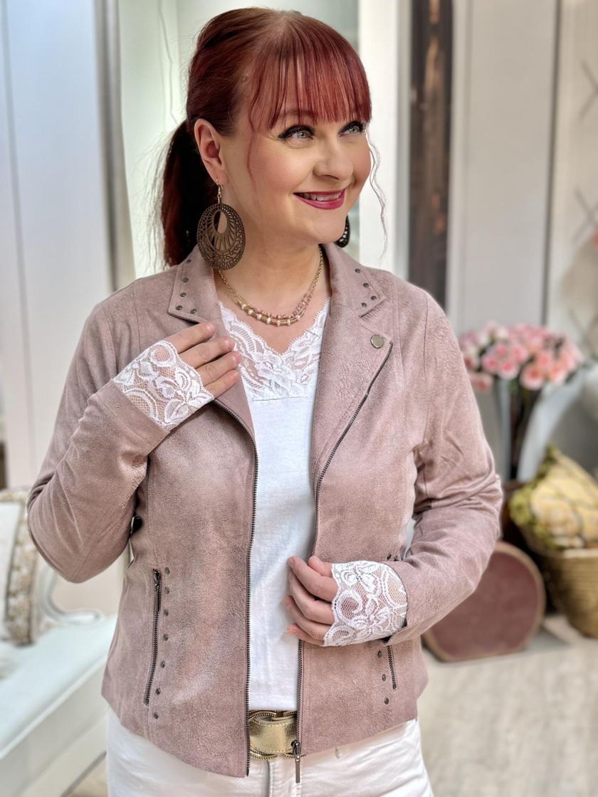 In Front jakku ihanan ohutta ja joustavaa nahkajäljitelmää. Materiaali on todella miellyttävää ja siinä on kiva elävä pinta. Jakussa on paljon kivoja yksityiskohtia, koristevetoketjut ja makeita niittejä. Jakku on kevyt ja siinä ei ole vuoria. Malli on sievä ja kauniisti istuva.