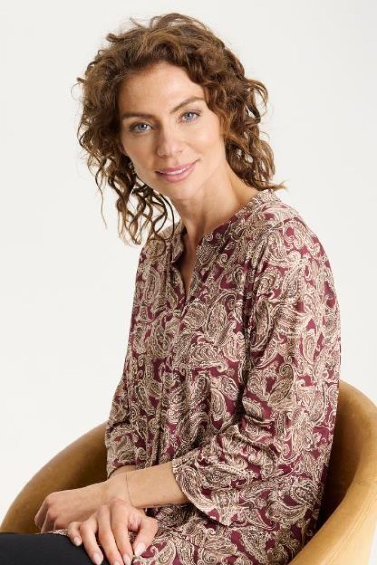 In Front pusero/tunika laadukasta, ohutta ja huoletonta pese ja pidä trikoota. Mallissa on pieni pystykaulus ja edessä keskellä reilu vastalaskos. Hiha on kevyesti vajaamittainen, helma kauniisti kaarrettu ja sivuilla halkiot. Malli on suora ja mitoitus hieman sirompi. Tarkistathan mitat.