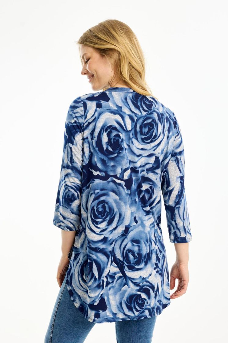 In Front pusero/tunika laadukasta, ohutta ja huoletonta pese ja pidä trikoota. Mallissa on pieni pystykaulus ja edessä keskellä reilu vastalaskos. Hiha on kevyesti vajaamittainen, helma kauniisti kaarrettu ja sivuilla halkiot. Malli on suora.