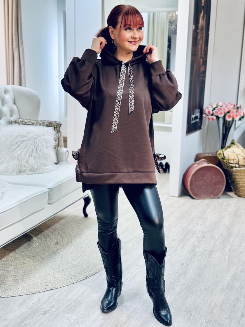 New Collection makea hupparitunika. Hupussa ilmettä antaa leonauhat ja sivuilla leorusetit. Mallissa on laskettu olkapää ja reilu pussihiha. Helma on takaa kivasti pidempi ja sivuja keventää halkiot. Materiaali on ohutta ja pehmeää sekä sisäpuoli kivan liukas. Yhden koon malli noin 38-44 kokoisille.