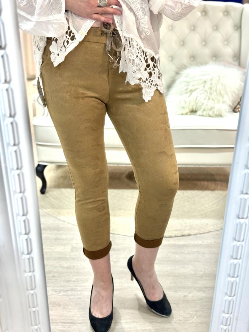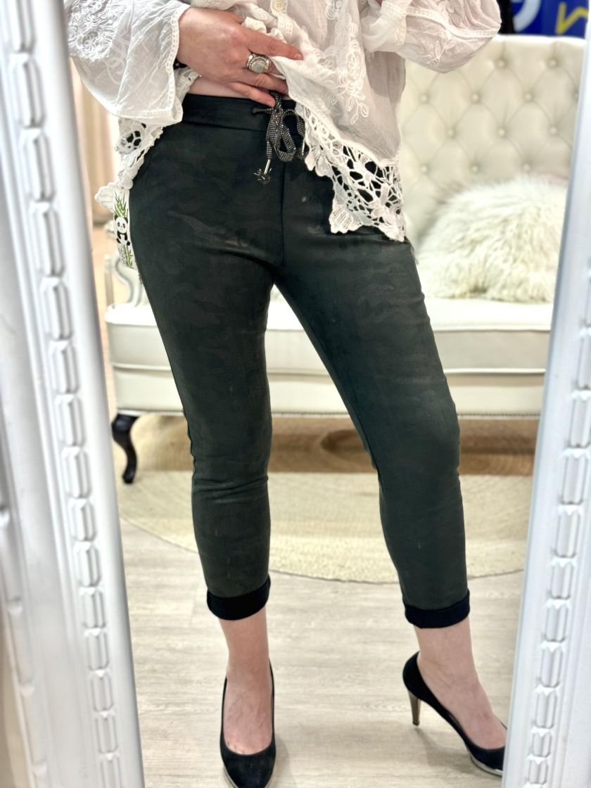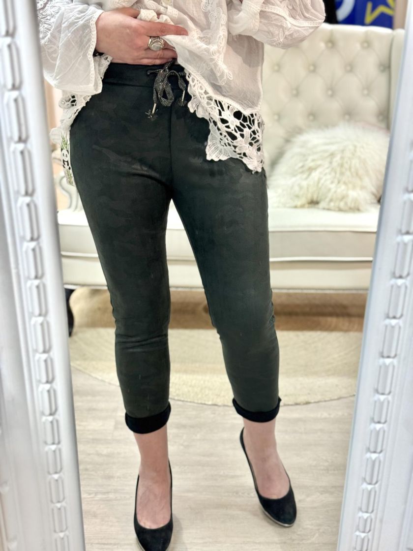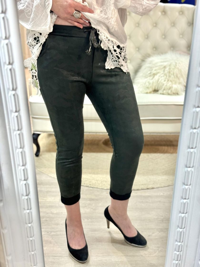 New Collection joggerit ohutta ja mokkamaisen tuntuista ohutta joustokangasta. Jujuna kankaassa on makea armykuosi. Joggerissa on joustovyötärö ilman vetoketjua ja vyötäröllä kiristysnauhat. Edestä löytyy taskut. Vyötärönkorkeus on normaali ja lahjetta kääntämällä voi säädellä pituutta. Mitoitus on siro, joten tarkistathan mitat. Yhden koon malli noin 36-42 kokoisille.