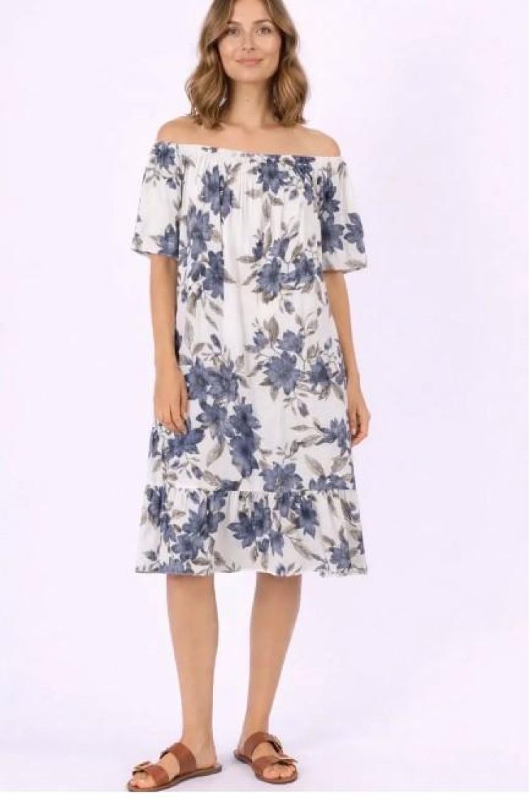 New Collection kevyt ja kesäinen mekko suurikokoisilla kukilla. Mekon ilmava malli laskeutuu kauniisti. Pääntiellä on rypytetty kuminauharesori, jonka voi halutessaan laskea olalle. Malli hieman levenee helmaa kohden, jossa kaunis frilla. Yhden koon malli ja vastaa n.36-40 kokoa. Tarkastathan mitat.