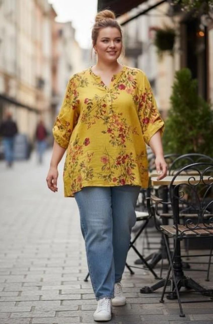 Plusmallisto New Collection sievä kukkapusero mukavan ohutta pellavaa. Edessä pääntien alla napit ja hihaa voi kääntää napin avulla. Malli on yhden koon ja vastaa n. 42-46 kokoa. Tarkastathan mitat. Kauniit värit kesään! Plusmallisto New Collection sievä kukkapusero mukavan ohutta pellavaa. Edessä pääntien alla napit ja hihaa voi kääntää napin avulla. Malli on yhden koon ja vastaa n. 42-46 kokoa. Tarkastathan mitat. Kauniit värit kesään!