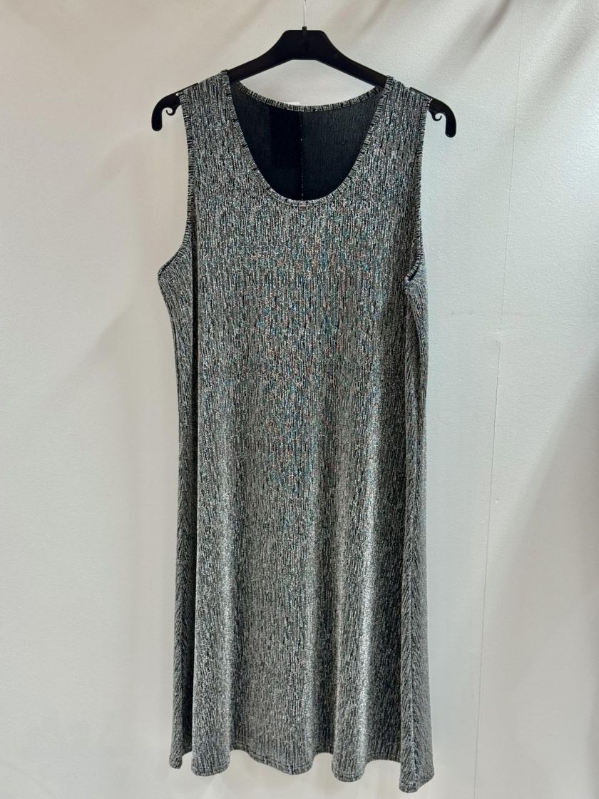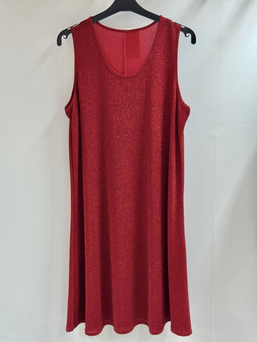 Plusmallistoa New Collection kauniisti kimaltava ja ihanasti joustava lurexmekko. Malli on hieman levenevä ja pituus noin puoleen pohkeeseen. Huolettoman helppo ja superjoustava materiaali. Yhden koon malli noin 44-48 kokoisille. Tarkistathan mitat.