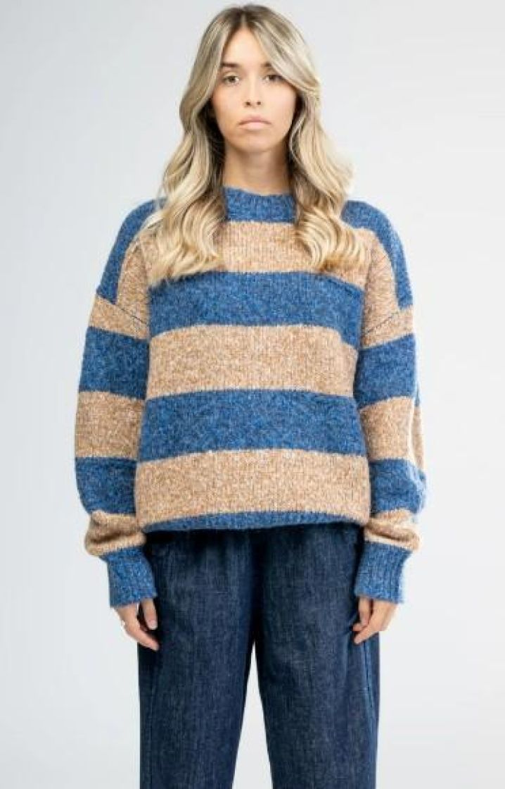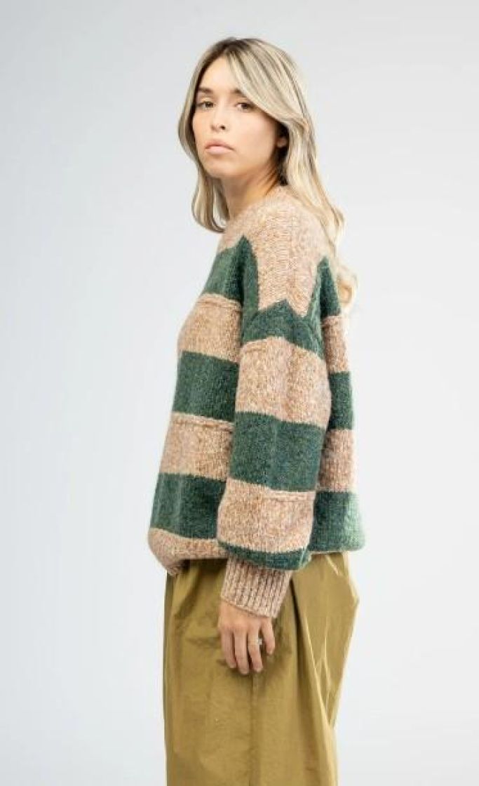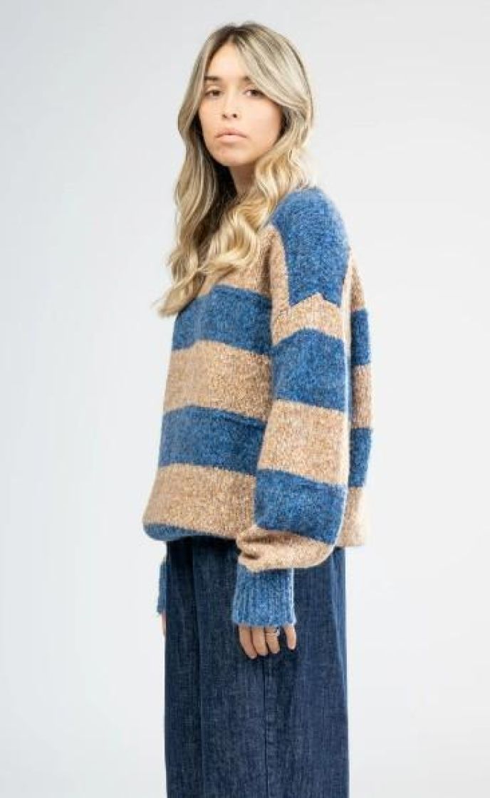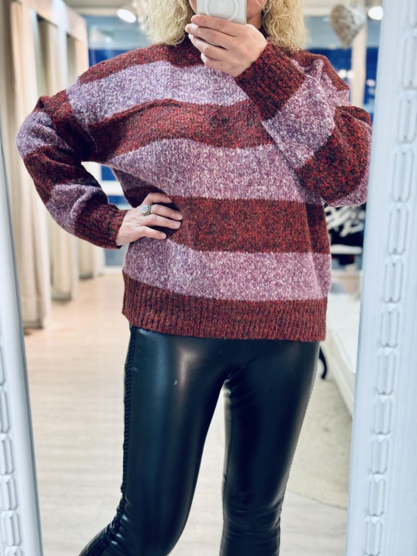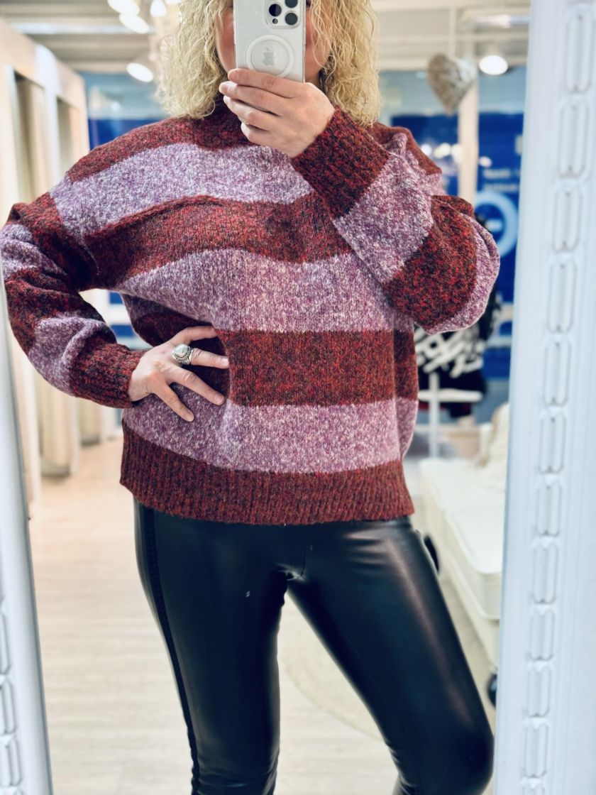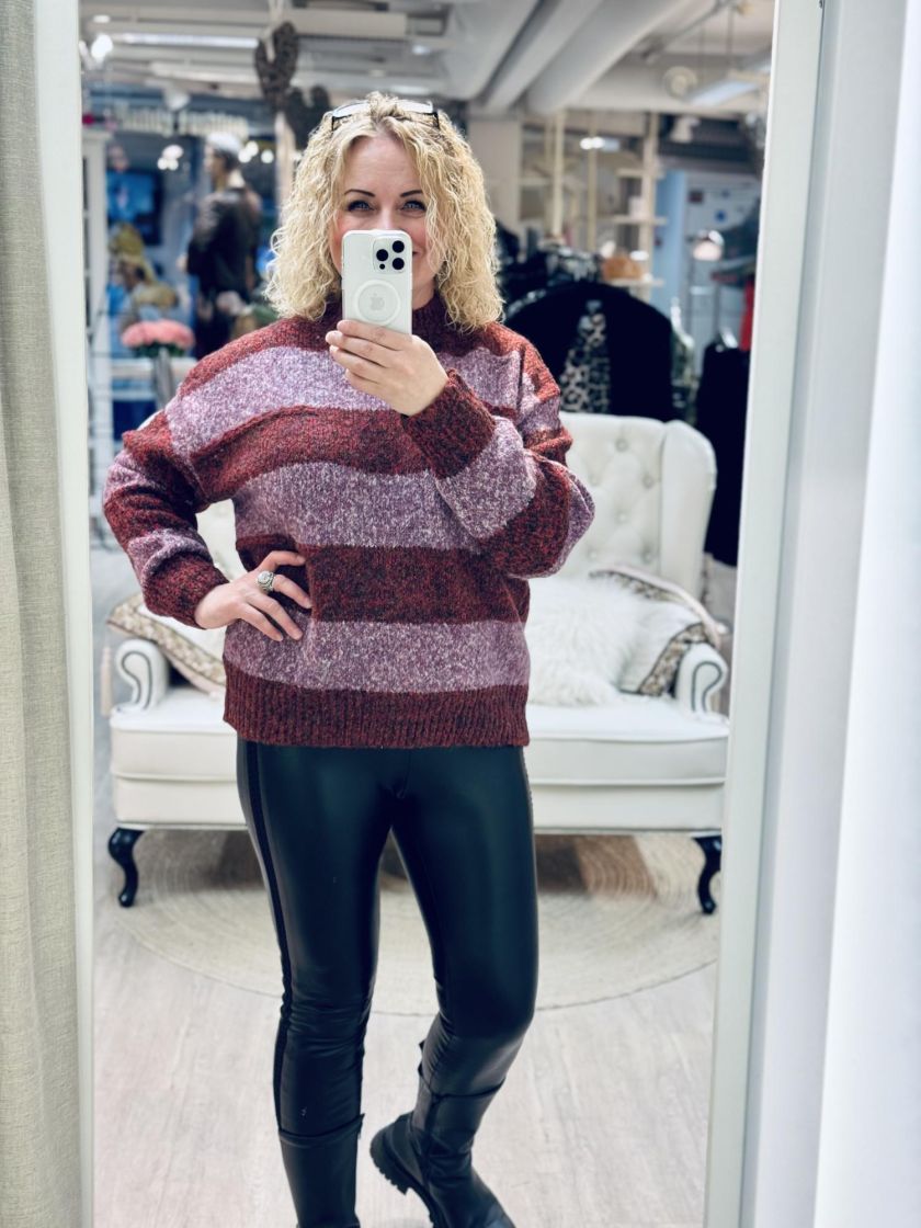 New Collection pehmeä ja pörröinen neulepusero. Puserossa on makea raidoitus ja kilpikonnakaulus. Hihansuussa ja helmassa ryhtiä antaa resorit. Yhden koon malli noin 38-44 kokoisille.