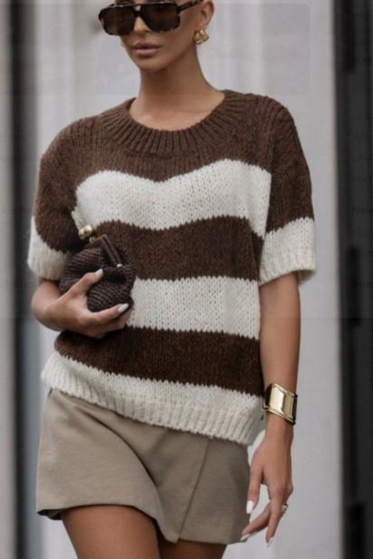 New Collection pehmeä neulepusero lyhyellä hihalla. Puserossa on reilut raidat ja kolme väriä valittavissa. Hihansuussa, helmassa ja pääntiellä ryhtiä antaa resorit. Yhden koon malli ja vastaa noin 38-42 kokoisille.