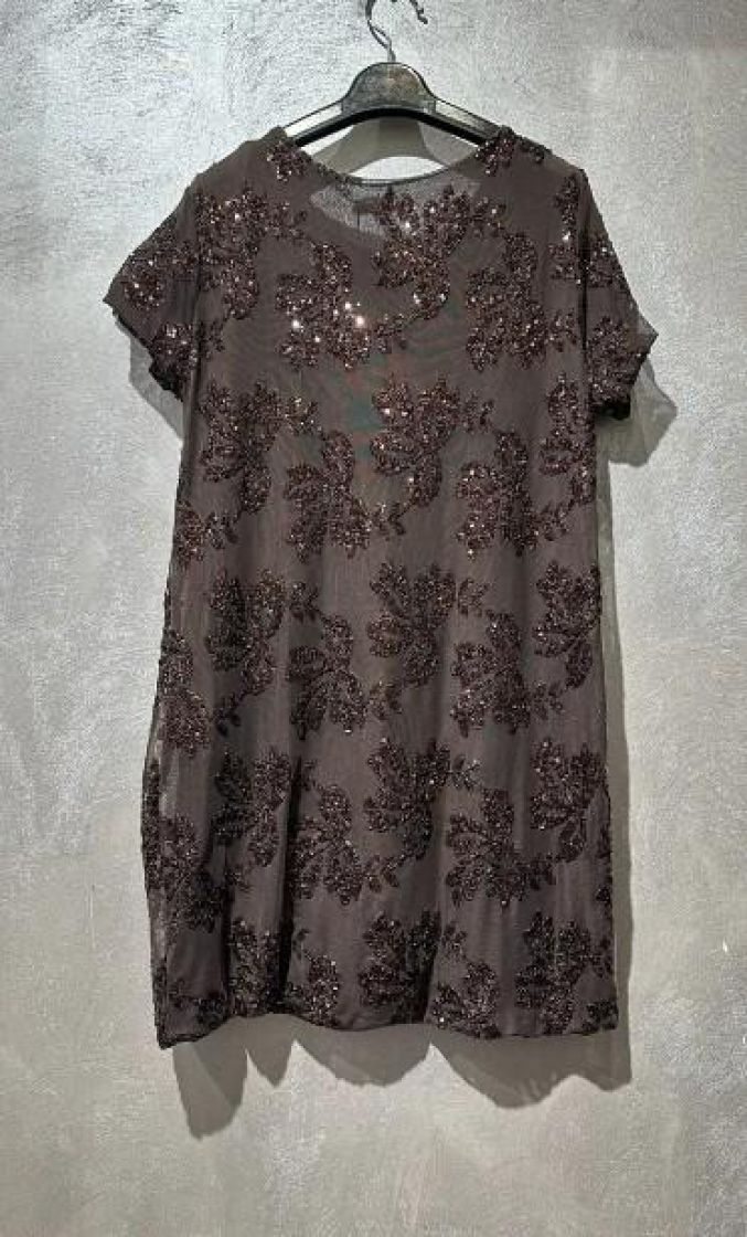 New Collection kauniisti kimaltava paljettikoristeltu mekko/tunika. Materiaalina on mukavan joustava meshkangas ja alla ohut sekä joustava trikoovuori viskoosisekoitetta. Malli on suora ja mitoitus siro. Yhden koon malli noin 36-38 kokoisille. Tarkistathan mitat.