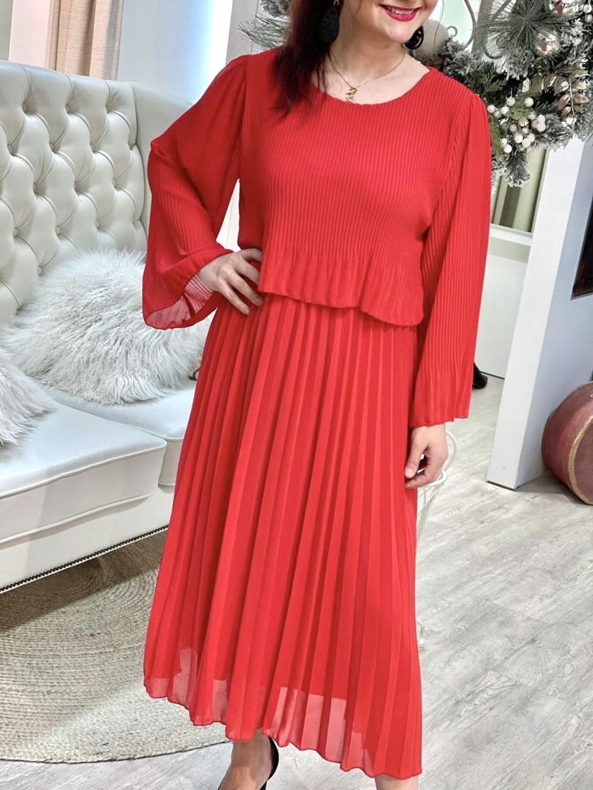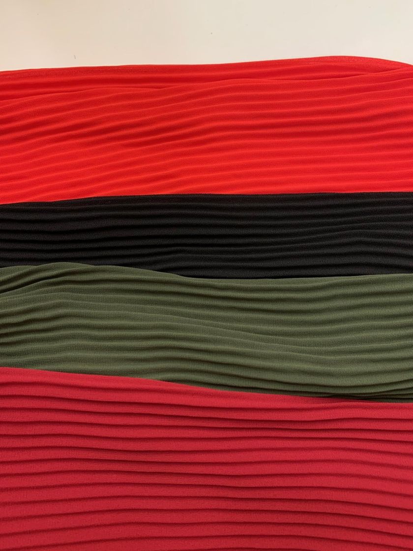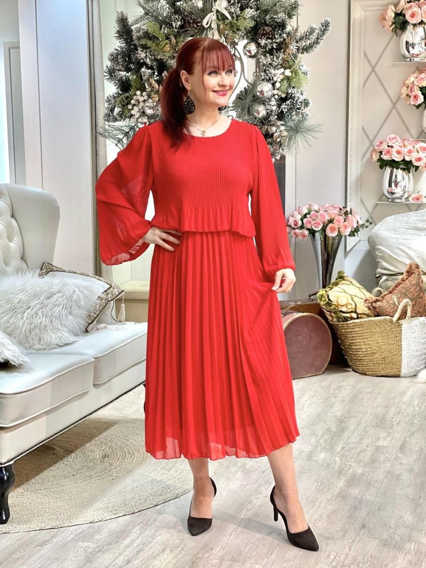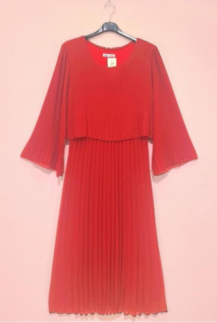 New Collection kauniisti pliseerattu sifonkimekko. Mekossa on kaksi kerrosta, jossa sifonki liehuu kauniisti yläosan päällä. Vyötäröllä muotoa tuo kuminauha ja hiha on kivan väljä. Alla on hyvin joustava vuori ohutta viskoositrikoota. Yhden koon malli noin 38-42 kokoisille.