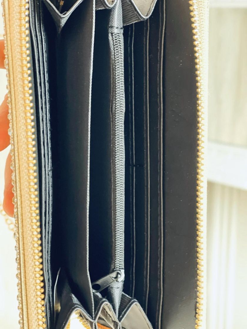 New collection ihanasti kimmeltävä strassilompakko/laukku. kiinnitys on vetoketjulla ja mukana irrotettava tulee ketjuhihna. Sisällä laukussa on vetoketjutasku ja korttitaskuja.