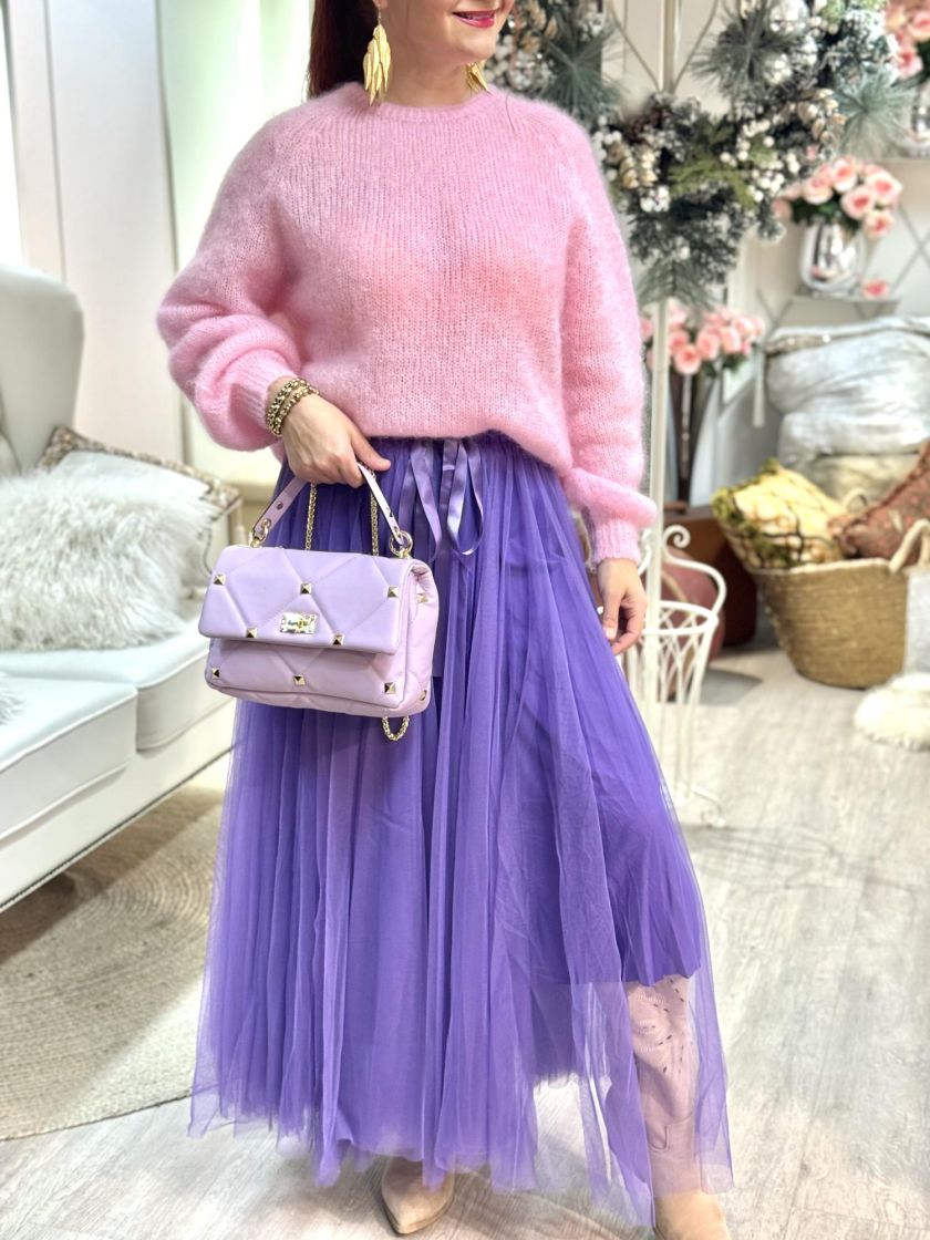 New Collection kaunis tyllihame. Malli on kellohelmainen ja vyötäröllä mukavuutta antaa joustava vyötärönauha. Vyötärönauhan kruunaa solmittavat satiininauhat. Alla on ohut vuori. Yhden koon malli noin 36-42 kokoisille.