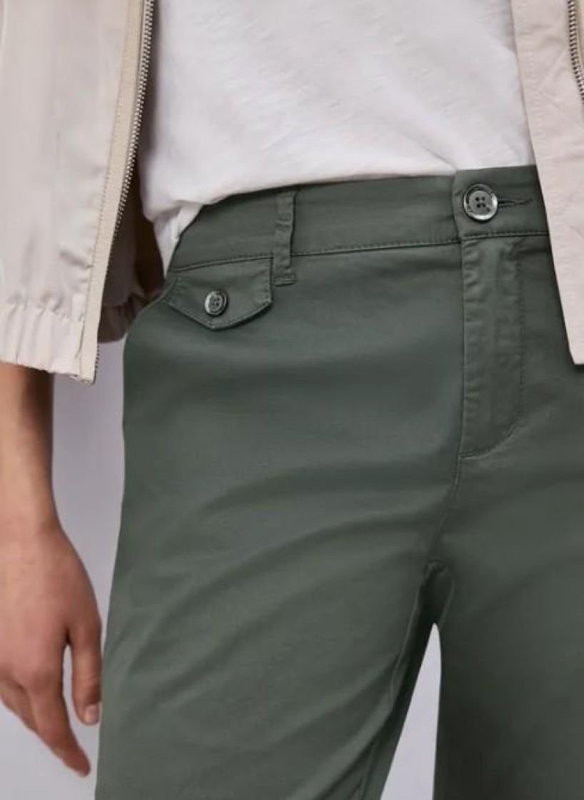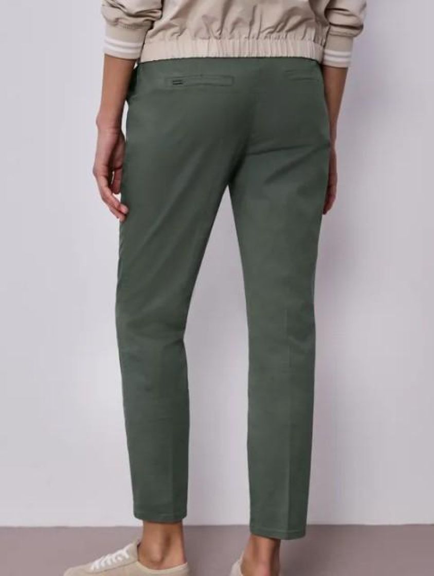 Street One klassiset chino housut mukavan pehmeää ja ohutta puuvillaa. Takana mukavuutta antaa kuminauhavyötärö, ja edessä nappi vetoketjukiinnitys. Sivussa taskut ja takana valetaskut. Malli on kapea ja vyötärönkorkeus normaali. Tarkistathan mitat.