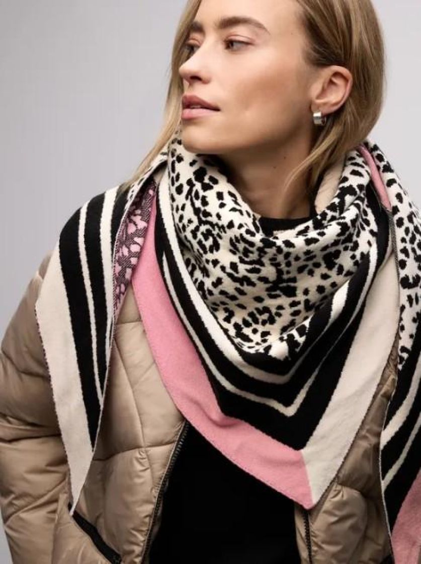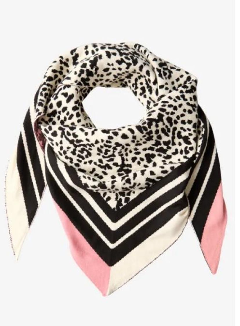 Street One makee kolmiohuivi leopardi kuviolla. Materiaali on todella pehmeää ja mukavan tuntuista. Lisäilmettä antaa sivuilla eriväriset raidat.