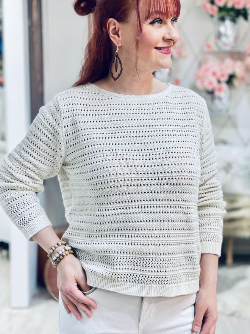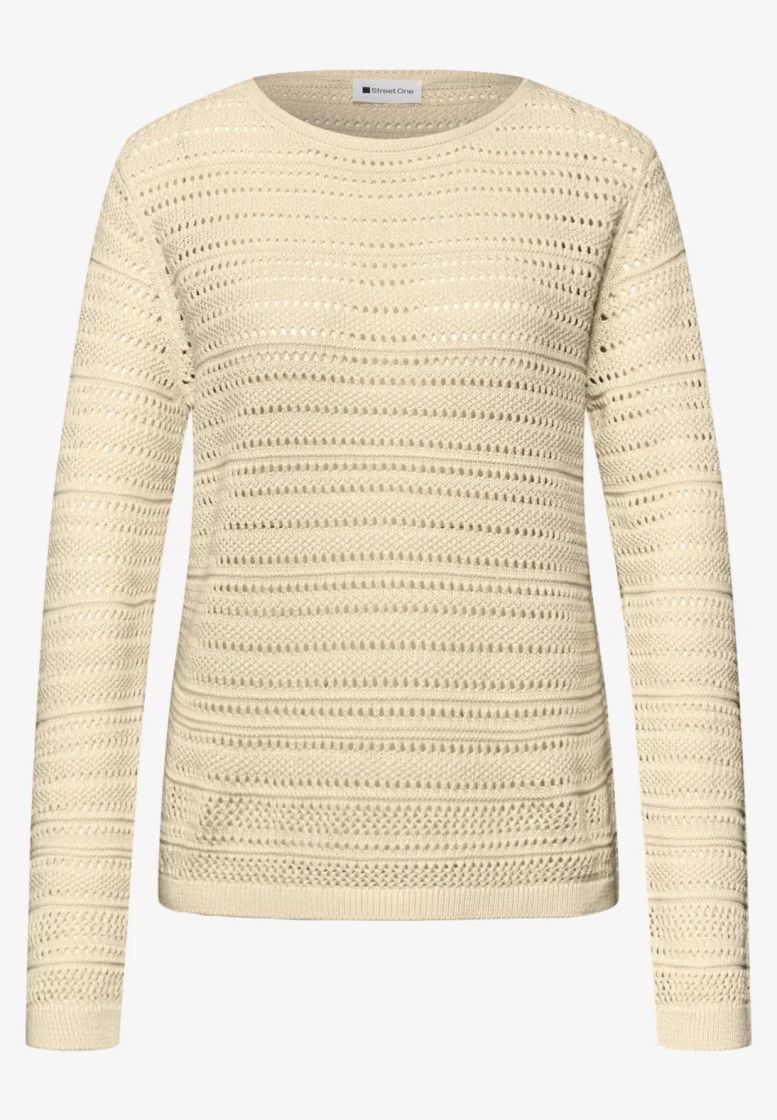 Pehmeä beige sopii lähes kaikkien värien kanssa. Street One pitsineulepusero ihanan pehmeää puuvillaneulosta. Puseron malli on klassisen tyylikäs pitsineulos kivan eläväistä. Alle voi laittaa halutessaan topin. Mitoitus on normaali.