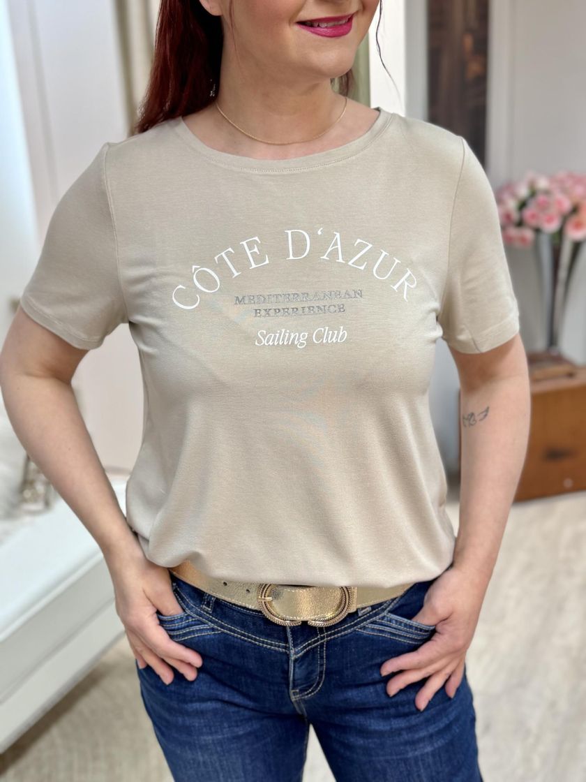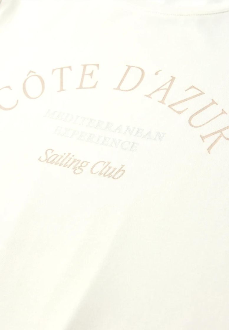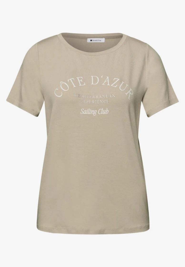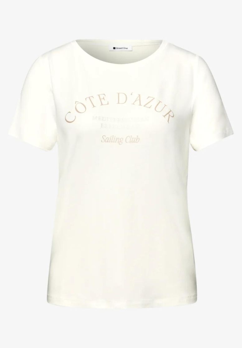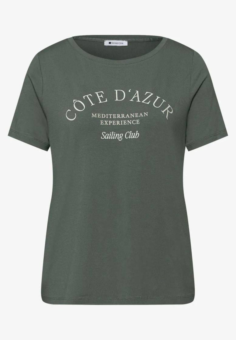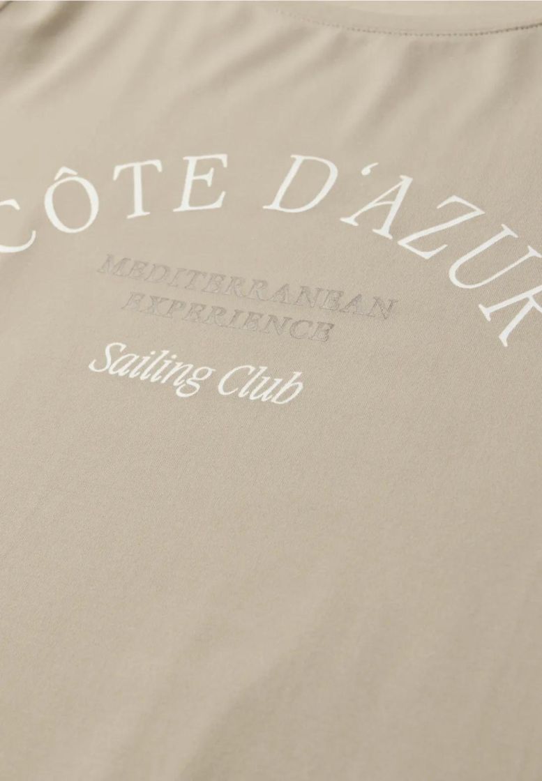Street One t-paita upeissa kevään väreissä. Kivaa fiilistä tuo edessä reilu Sailing Club printti. Materiaalina ihana ohut viskoositrikoo, joka hengittää ja joustaa. Mitoitus on normaali.