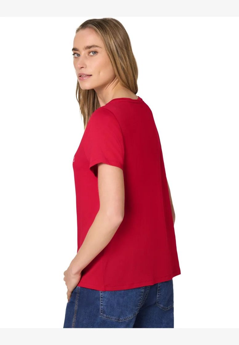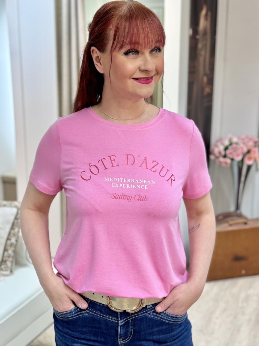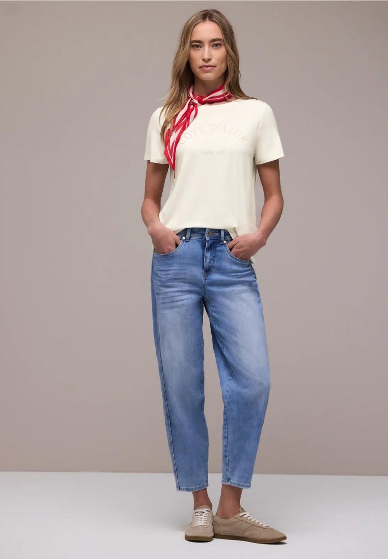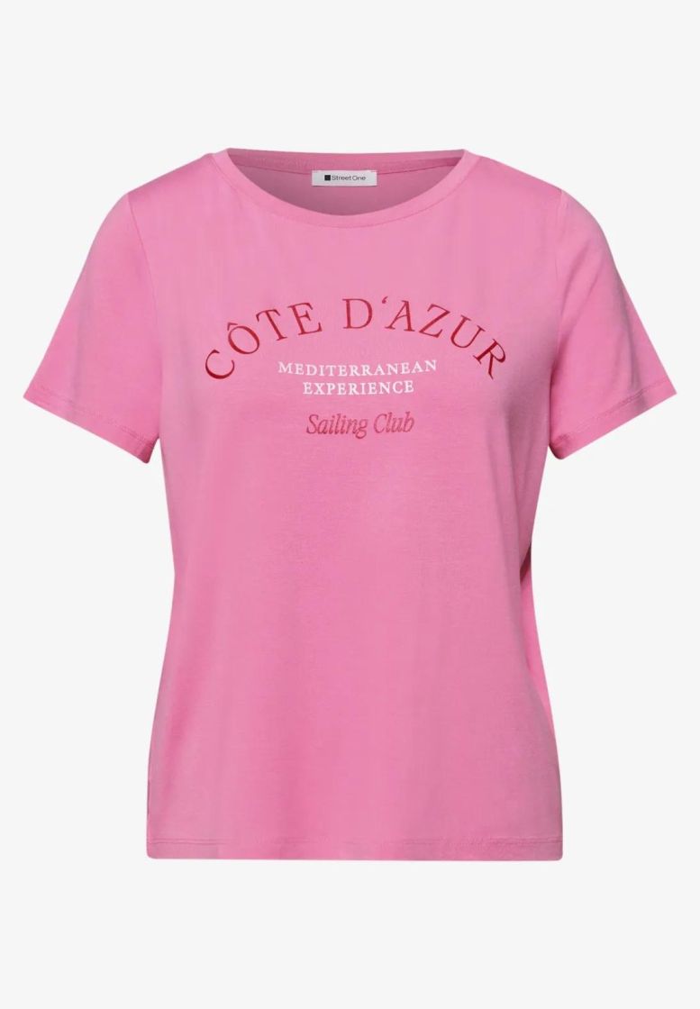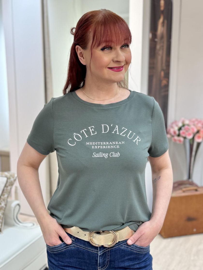 Street One t-paita upeissa kevään väreissä. Kivaa fiilistä tuo edessä reilu Sailing Club printti. Materiaalina ihana ohut viskoositrikoo, joka hengittää ja joustaa. Mitoitus on normaali.