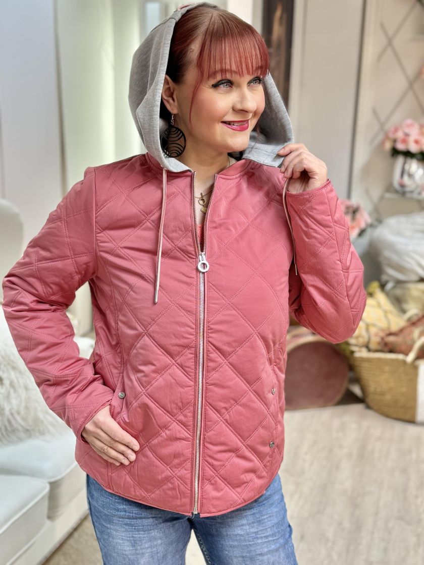 Ihana kevään väri! Street One bombermallinen tikkitakki kevyellä vanulla. Takissa on makea irrotettava collegehuppu ja hupussa kivat raidalliset kiristysnauhat. Edessä on nepparitaskut ja vetoketju. Materiaali mukavan liukasta ja hieman siftaavaa. Takin malli on suora.