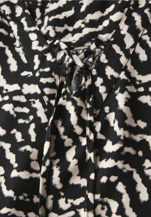 Street One tunikamekko kevyttä ja pehmeää viskoosia. Mallissa on kaunis avoin v-pääntie koristenauhoilla ja takana ryhdikäs kaarroke. Hihansuussa on nappikaitaleet ja sivuilla kätevät taskut. Mekko levenee hieman helmaa kohti ja mitoitus on reilu.