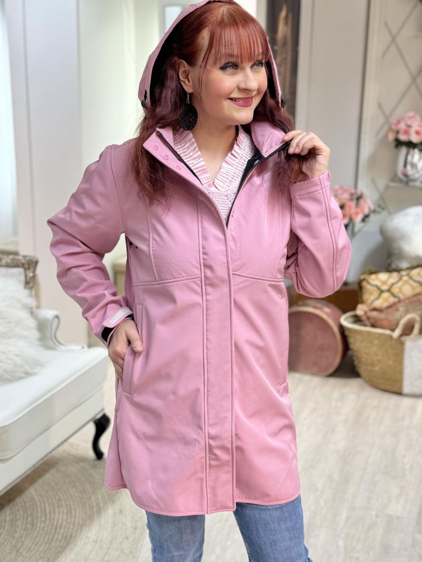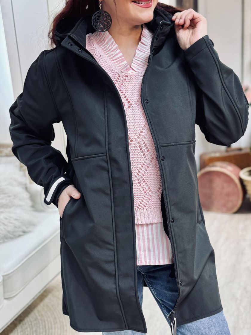 ZE-ZE tyylikäs jokasääntakki. Edessä on kahteen suuntaan aukeava vetoketju sekä nepparitaskut. Huppu on irrotettava ja siitä löytyy kätevät kiristysnauhat. Hihansuun pitää tiiviinä säädettävä kaitale tarranauhalla. Materiaali on kosteutta hylkivää softshellkangasta ja sisäpuoli pehmeää fleeceä. Vetoketjun vetimistä ja hihansuusta löytyy heijastimet ja hengittävyyttä tuo kainaloissa tuuletusaukot.