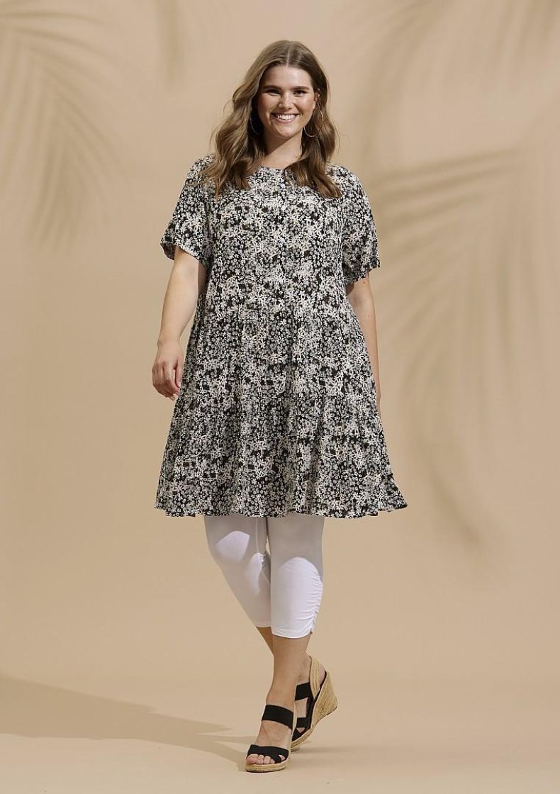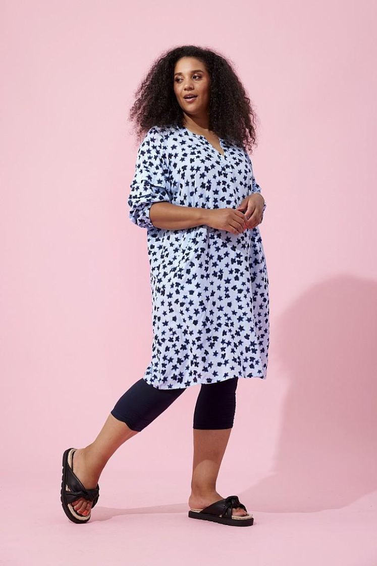 Leggarit on varsinaiset joka paikan housut ja voi yhdistää monella tapaa. Zhenzi kevyet vajaamittaiset leggarit ohutta, pehmeää ja joustavaa puuvillatrikoota. Lahkeensuussa ilmettä antaa pystyrypytys kuminauhalla ja mukavuuden takaa joustovyötärö.