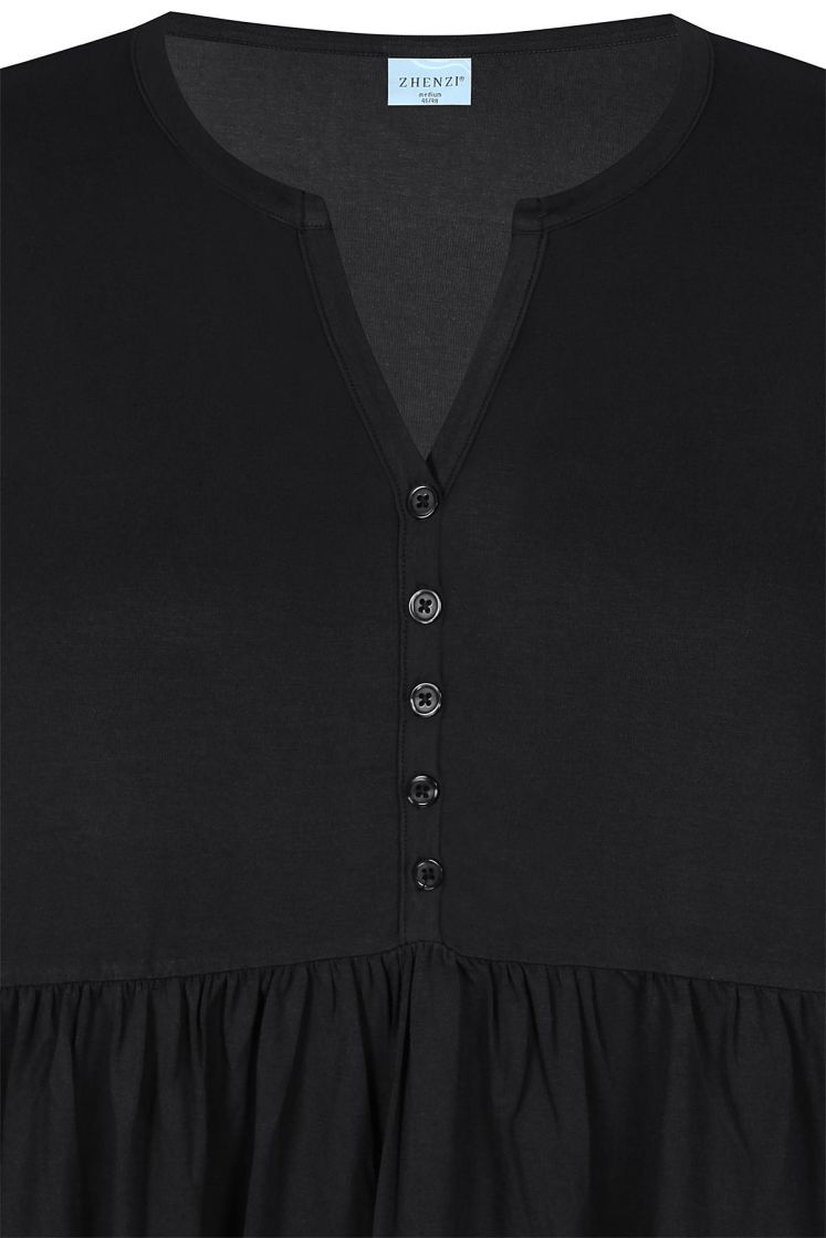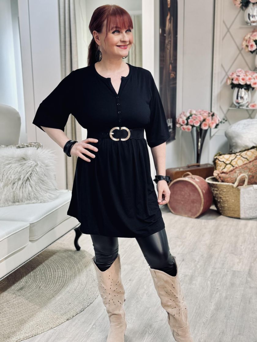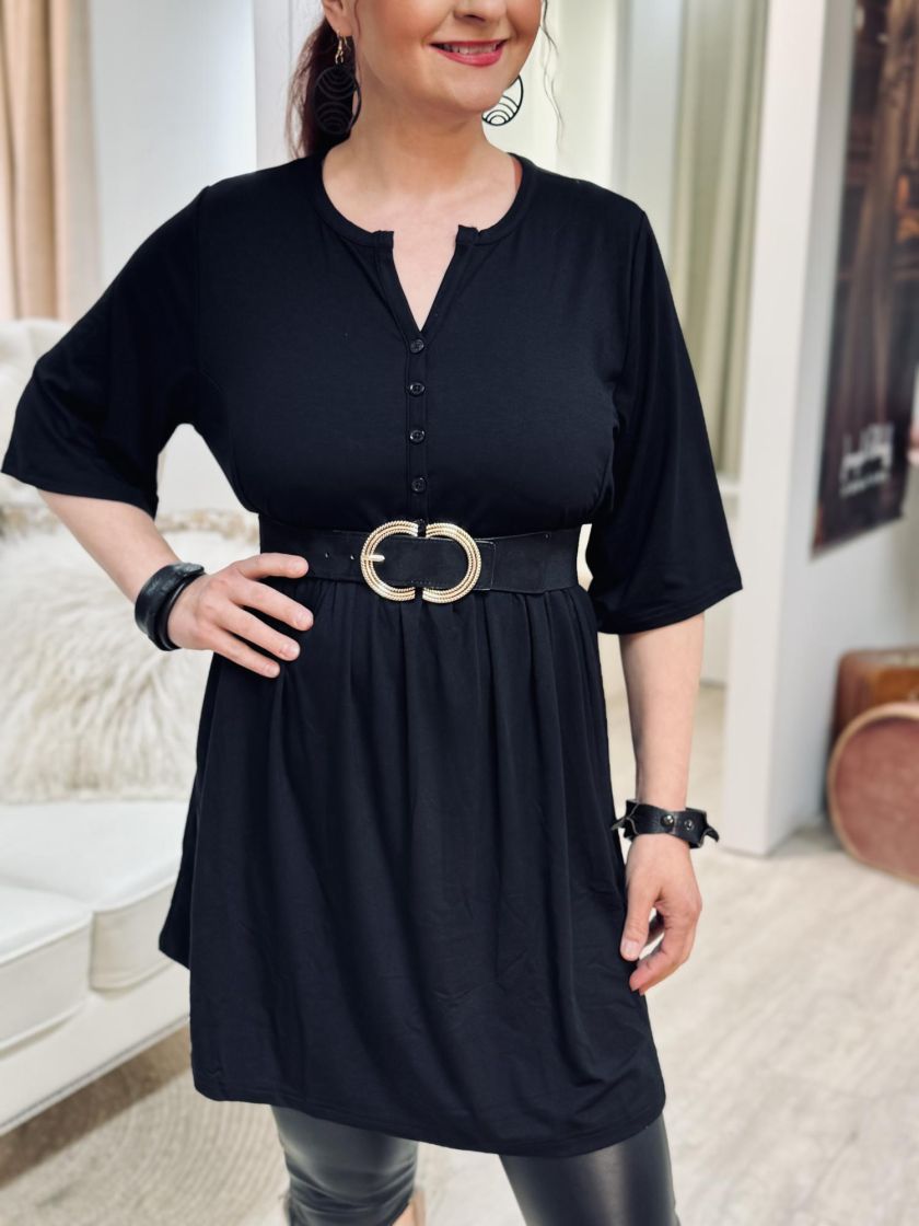 Plusmerkiltä Zhenzi a-linjainen tunika todella pehmeää ja mukavan joustavaa viskoositrikoota. Kivan fiiliksen tekee pääntie napeilla ja rypytys rinnan alla. Tunikaan voi yhdistää myös vyön! Tarkistathan mitat.