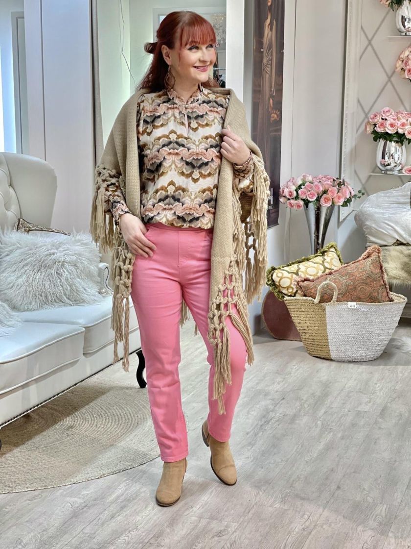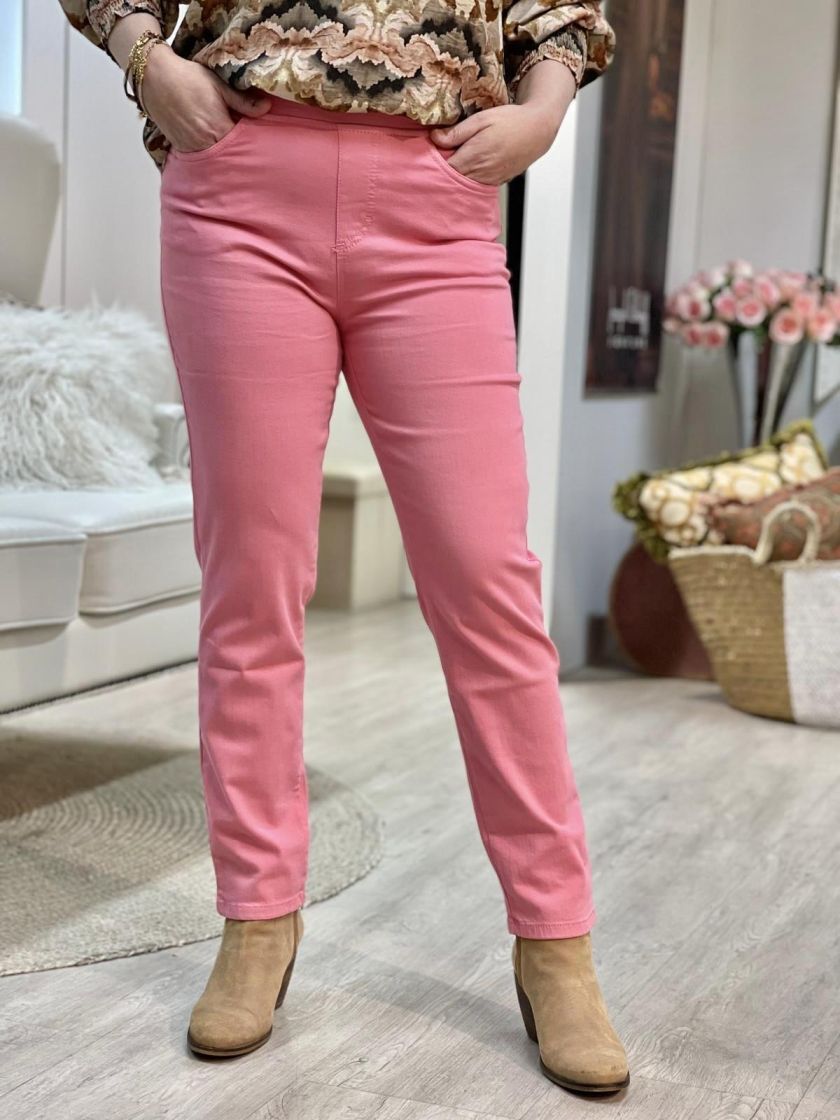 Herkullinen vadelmanpunainen! Anna Montana mukavan pehmeät ja ohuet housut nilkkapituudella. Mallina on Jump In eli ei ole vetoketjua ja housut vain vedetään jalkaan. Edessä on taskut ja takana paikkataskut. Housussa on korkea ja kivan napakka joustovyötärö. Materiaali on miellyttävää joustopuuvillaa. Normaali mitoitus.