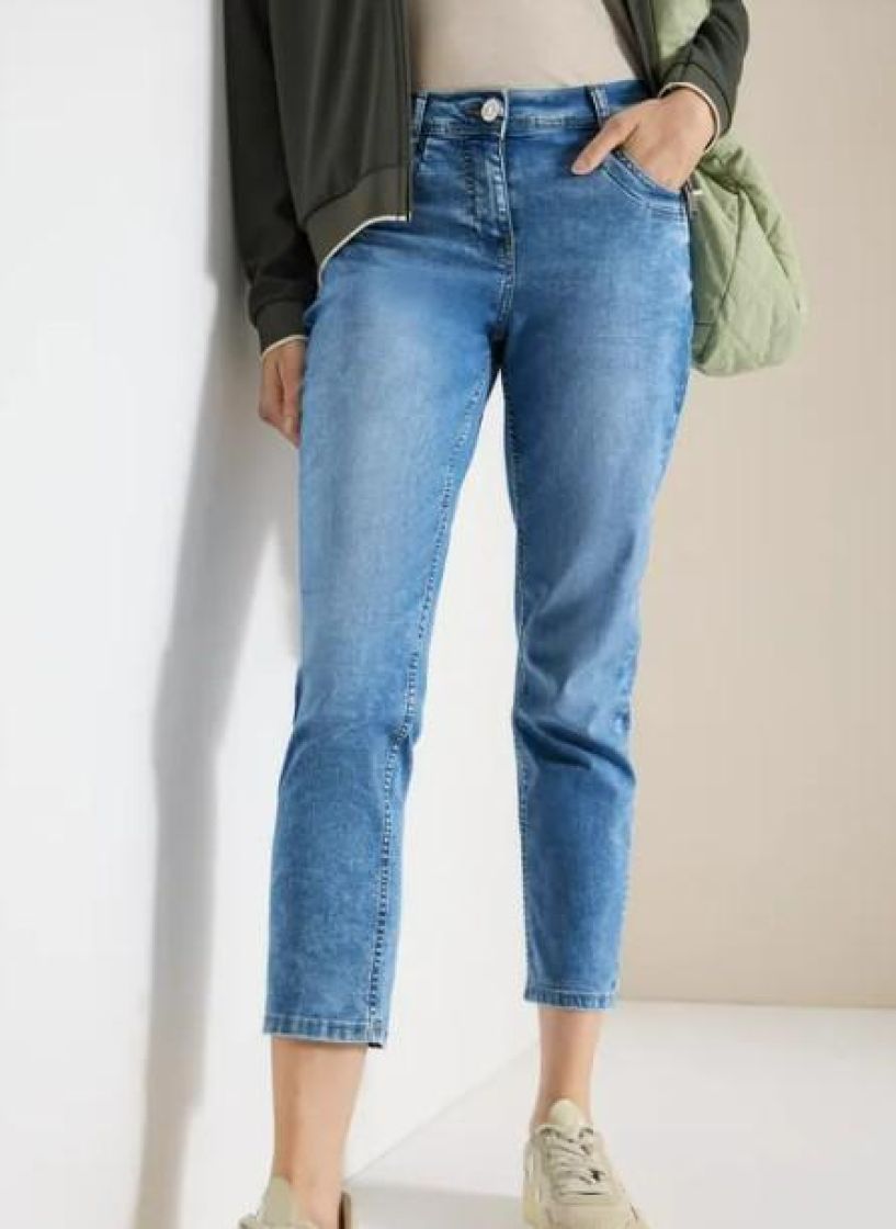 Cecil mukavan pehmeät vajaamittaiset joustofarkut makealla kulutuspesulla. Kivaa ilmettä antaa vaaleat tikkaukset. Mallissa normaali vyötärönkorkeus ja kapeneva lahje. 29 koko vastaa noin 40-42 kokoa, tarkistathan mitat. Makeat kevät/kesäfarkut!