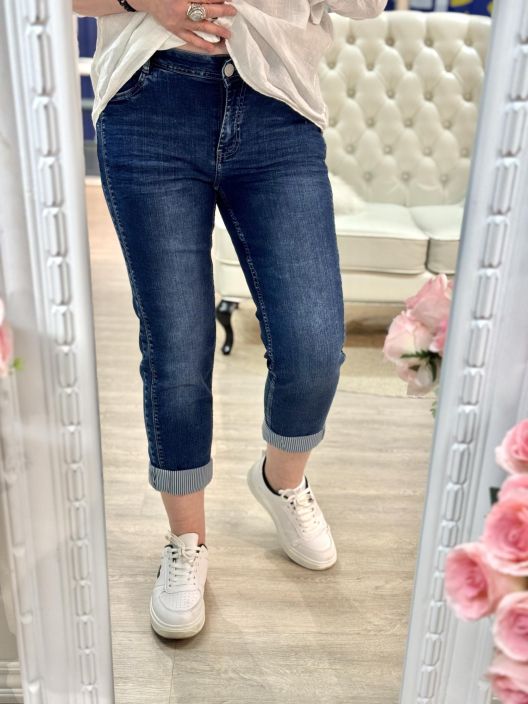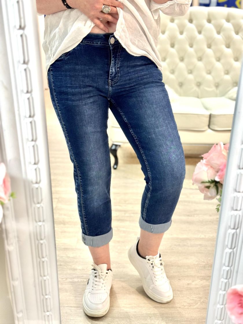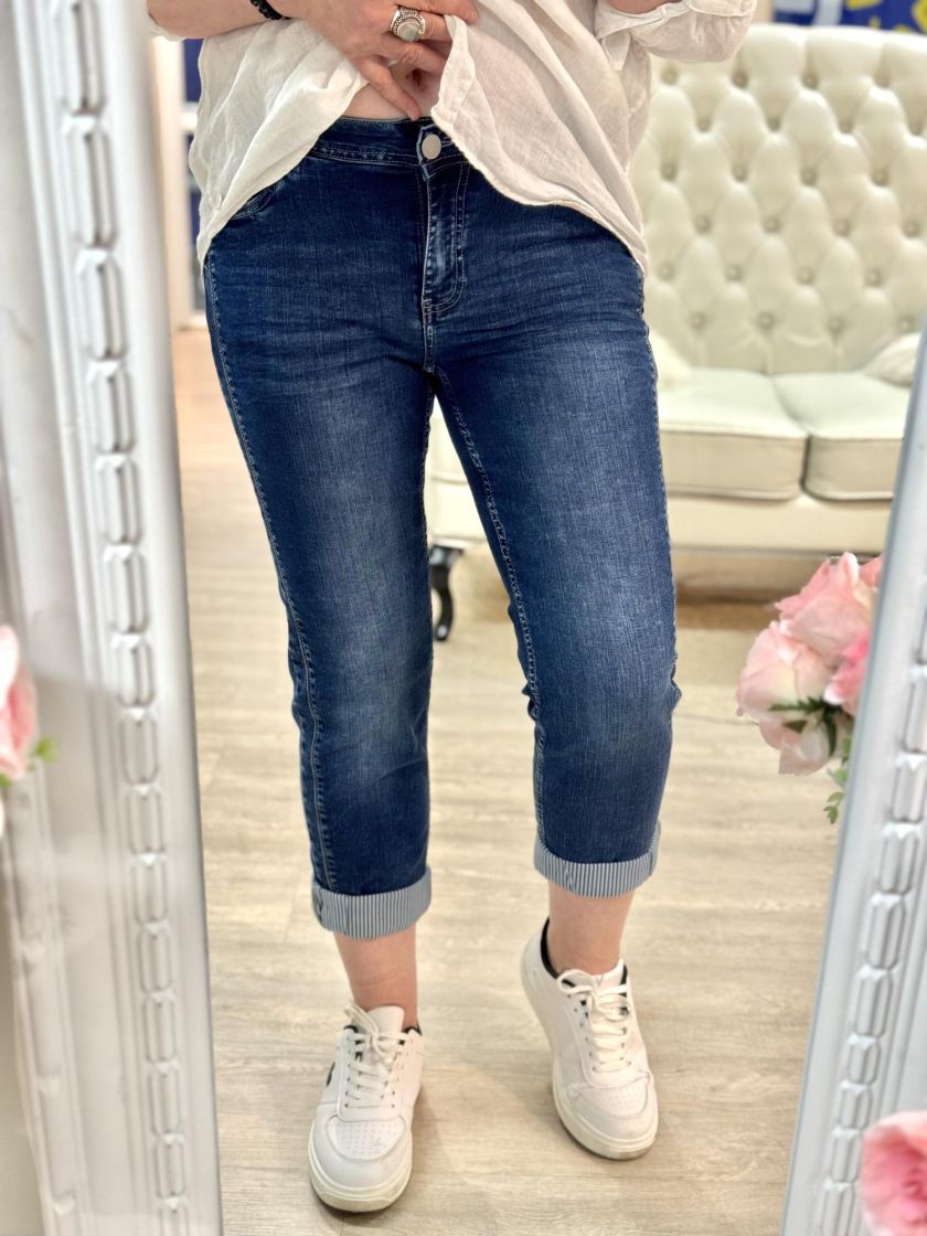 Cecil supermukavat nilkkamittaset joustofarkut makealla kulutuspesulla. Kivaa ilmettä antaa tikkaukset ja lahkeensuussa raitakangas. Edessä taskut ja takana. Vyötärönkorkeus on normaali ja kapeneva lahje. 31 koko vastaa noin 42 kokoa, tarkistathan mitat.
