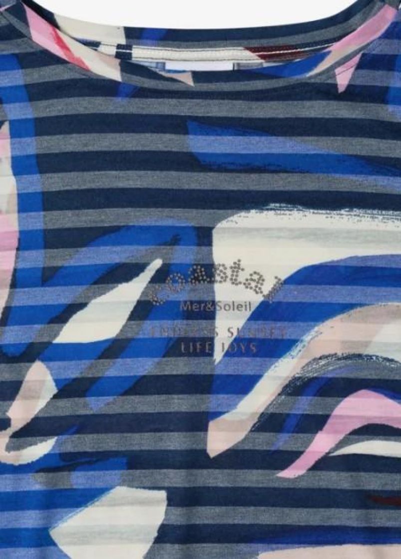 Cecil paita ohutta ja erittäin pehmeää viskoosisekoitetta. Paidassa kiva värikäs kuosi ja edessä teksti. Kivana jujuna on joustonauha helmassa, jolla voi säädellä paidan istuvuutta.