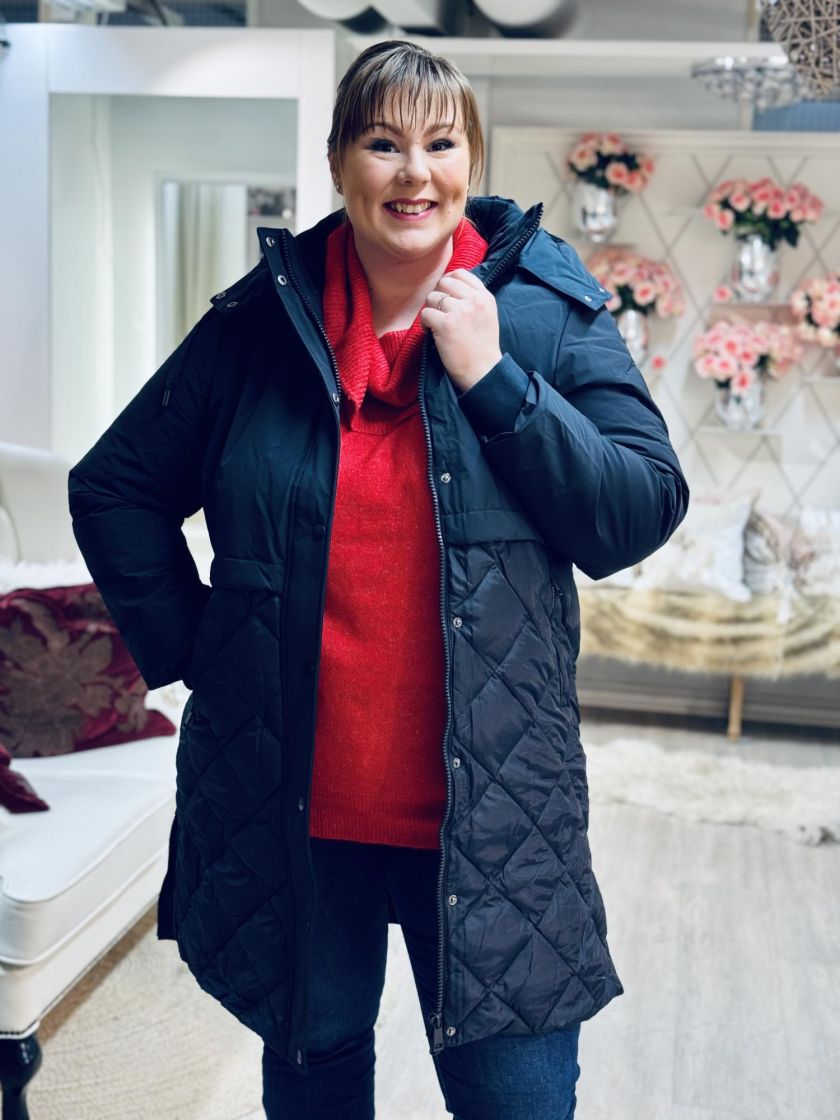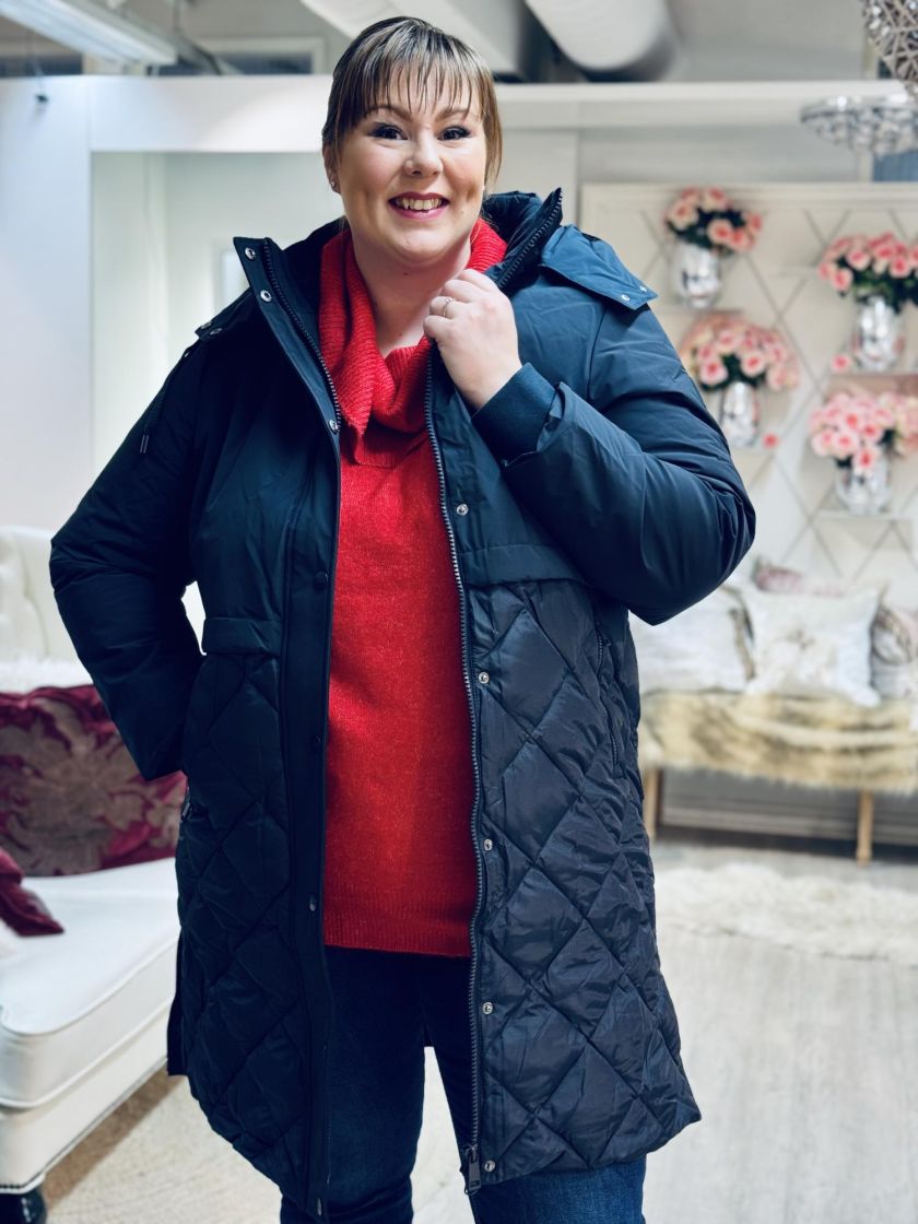 Cecil toppatakki kivoilla yksityiskohdilla. Yläosa ja hihat on mattapintaista parkahenkistä kangasta. Alaosa on siftaavaa tikattua kangasta. Vetoketju aukeaa kätevästi kahteen suuntaan ja taskuissa on myös reilut vetoketjut. Hihansuun pitää lämpimänä resori. Mallissa on irrotettava huppu kiristysnauhoilla ja helmassa vetoketjuhalkiot sivuilla. Mitoitus on reilu ja XS vastaa noin 38 kokoa, tarkistathan mitat.