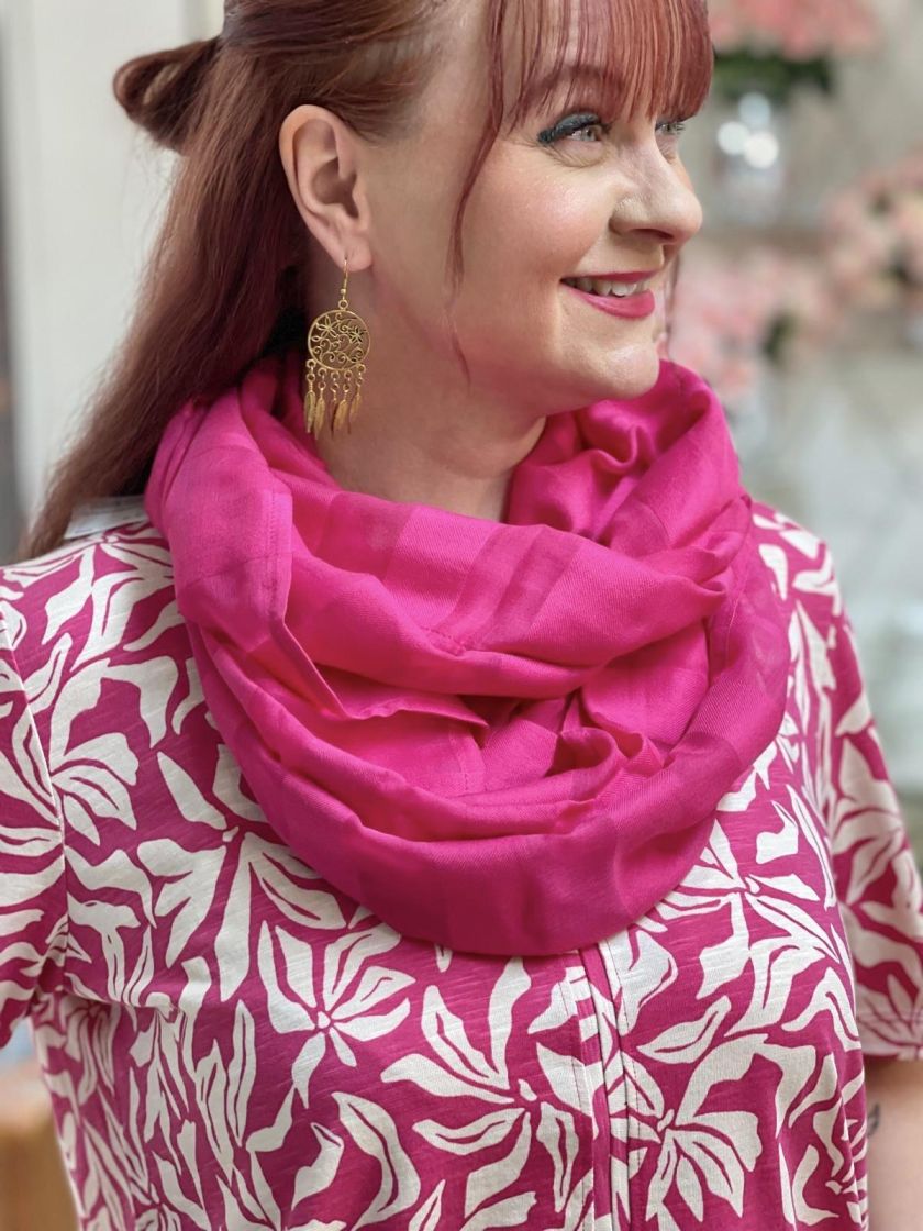 Cecil tuubihuivi ohutta ja pehmeää modaali-puuvillaa. Kangas on ihanan tuntuista ja hengittävää sekä siinä on kaunis raitakuosi. Huivi sopii hyvin sisä- ja ulkokäyttöön.