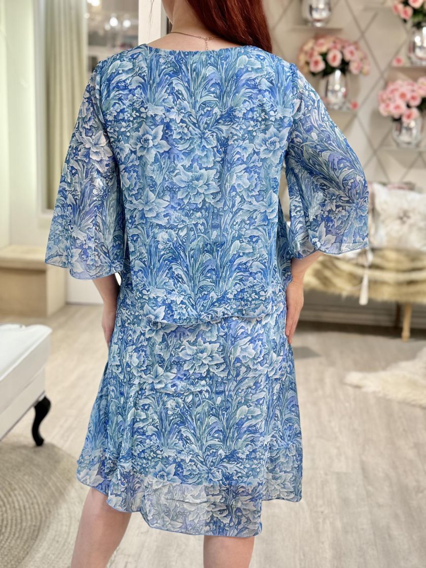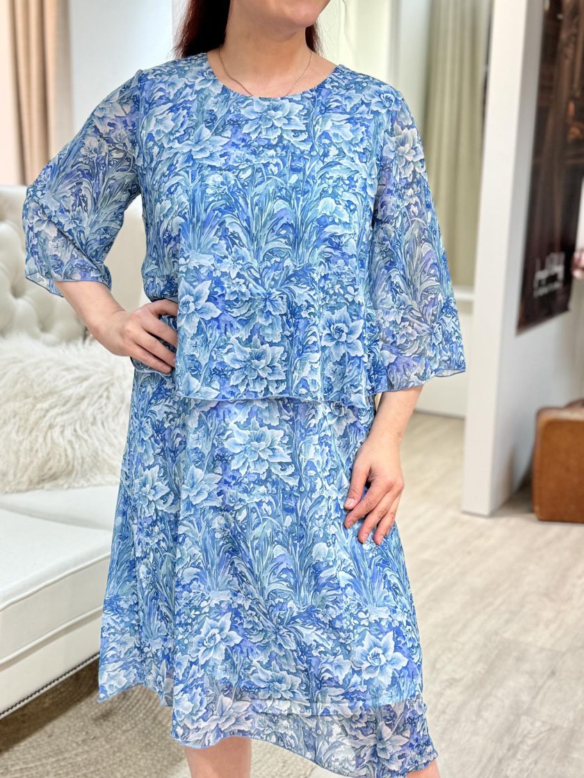 Godske upea kukallinen sifonkimekko. Alla on mukavan joustava vuori ja kauniisti kerrostettu helma. Hiha on läpikuultava ja vajaamittainen. Normaali mitoitus.