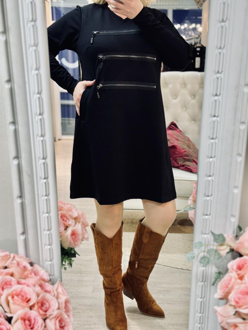 Plusmallistoa Gozzip makean räyhäkäs tunika/mekko mukavaa jerseytä. Edestä löytyy näyttävät koristevetoketjut ja kätevät taskut. Tunikassa on v-pääntie ja a-linjainen malli. Materiaali on laadukasta, joustavaa ja todella miellyttävää puuvillasekoitetta. reilumpi mitoitus, tarkistathan mitat.