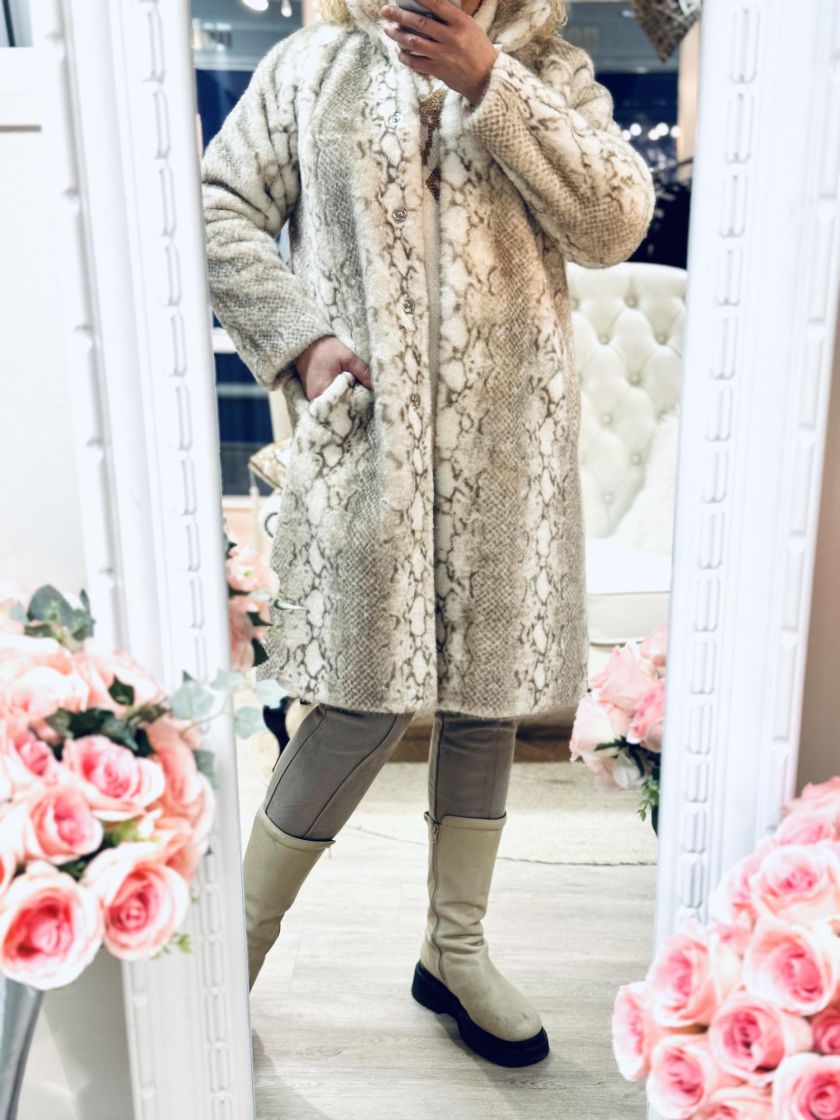 Micha ihanan pehmeä ja ylellisen tuntuinen takki keinokarvaa. Malli on yksinkertaisen tyylikäs ja materiaali eläinkuosilla on tässä se juttu. Edessä on nepparinapitus ja taskut. Takissa ei ole vuoria ja sisäpuoli materiaalista on sileä. Mitoitus on hieman reilumpi, joten tarkistathan mitat.