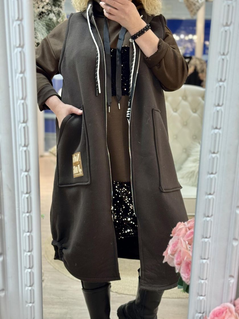 Plusmallistoa New Collection oversize huppuliivi kivaa collegea. Mallissa on huppu kiristysnauhoilla ja edessä reilut taskut, logomerkki sekä vetoketju. Helma on kauniisti kaarrettu ja sivuilla lisäilmettä antaa joustonauhat. Materiaali on hieman paksumpaa, pehmeää ja sisäpuoli todella pehmeä. Mitoitus on reilu ja malli hieman levenevä. Yhden koon malli noin 44-50 kokoisille.