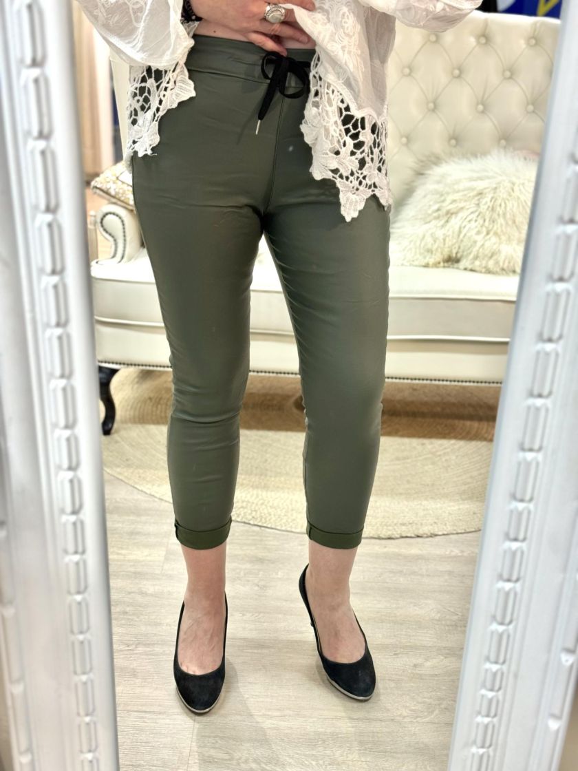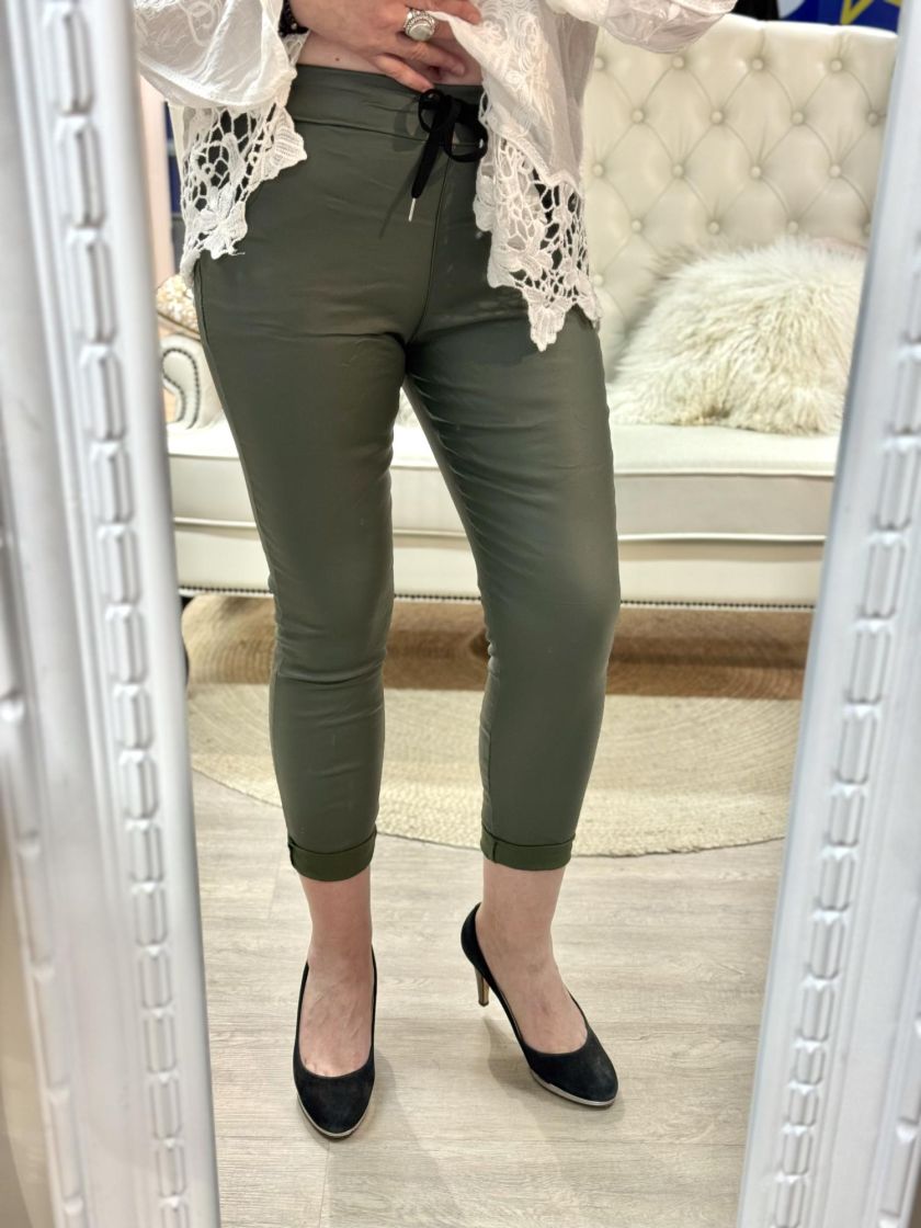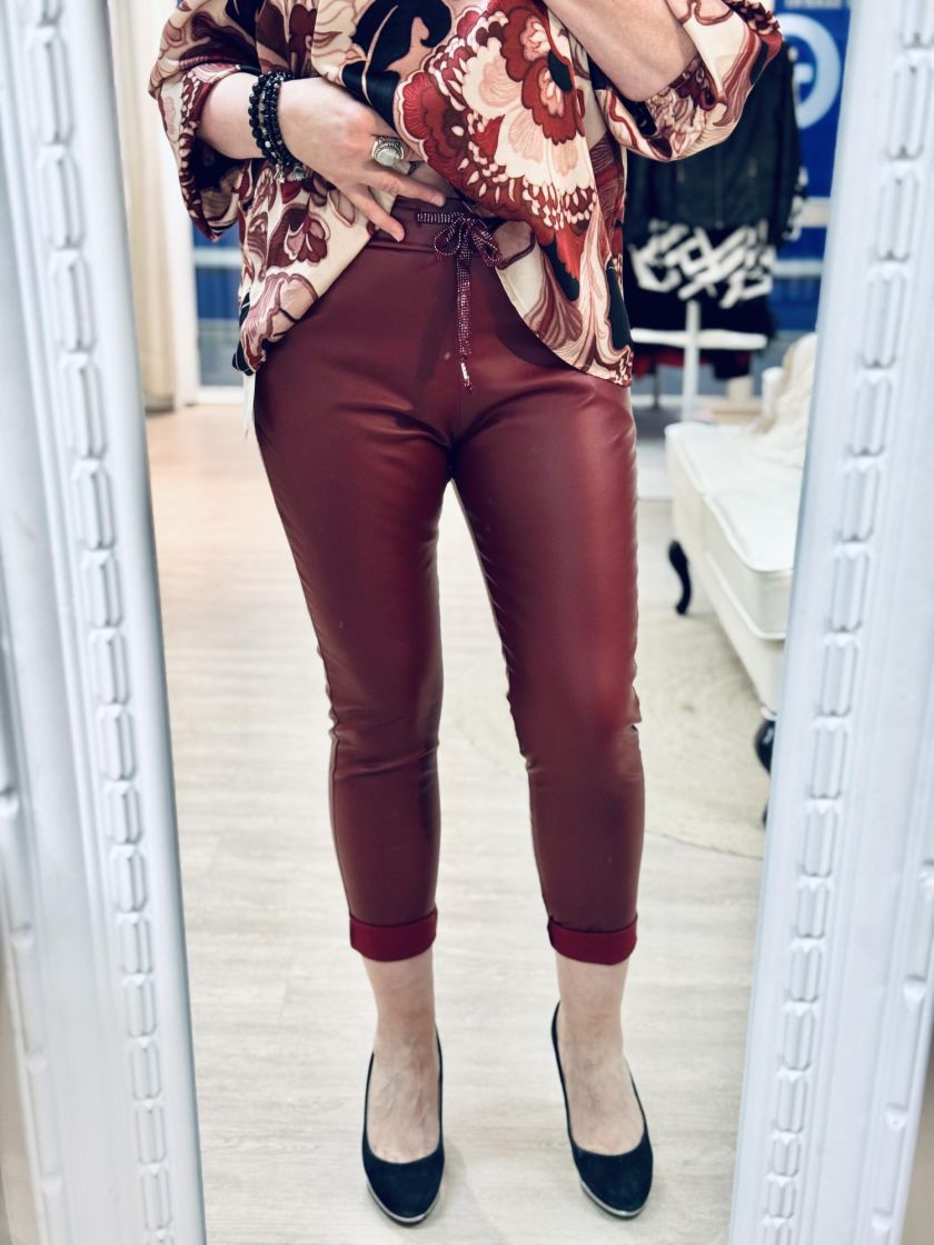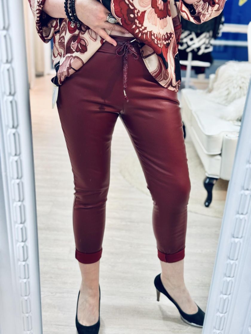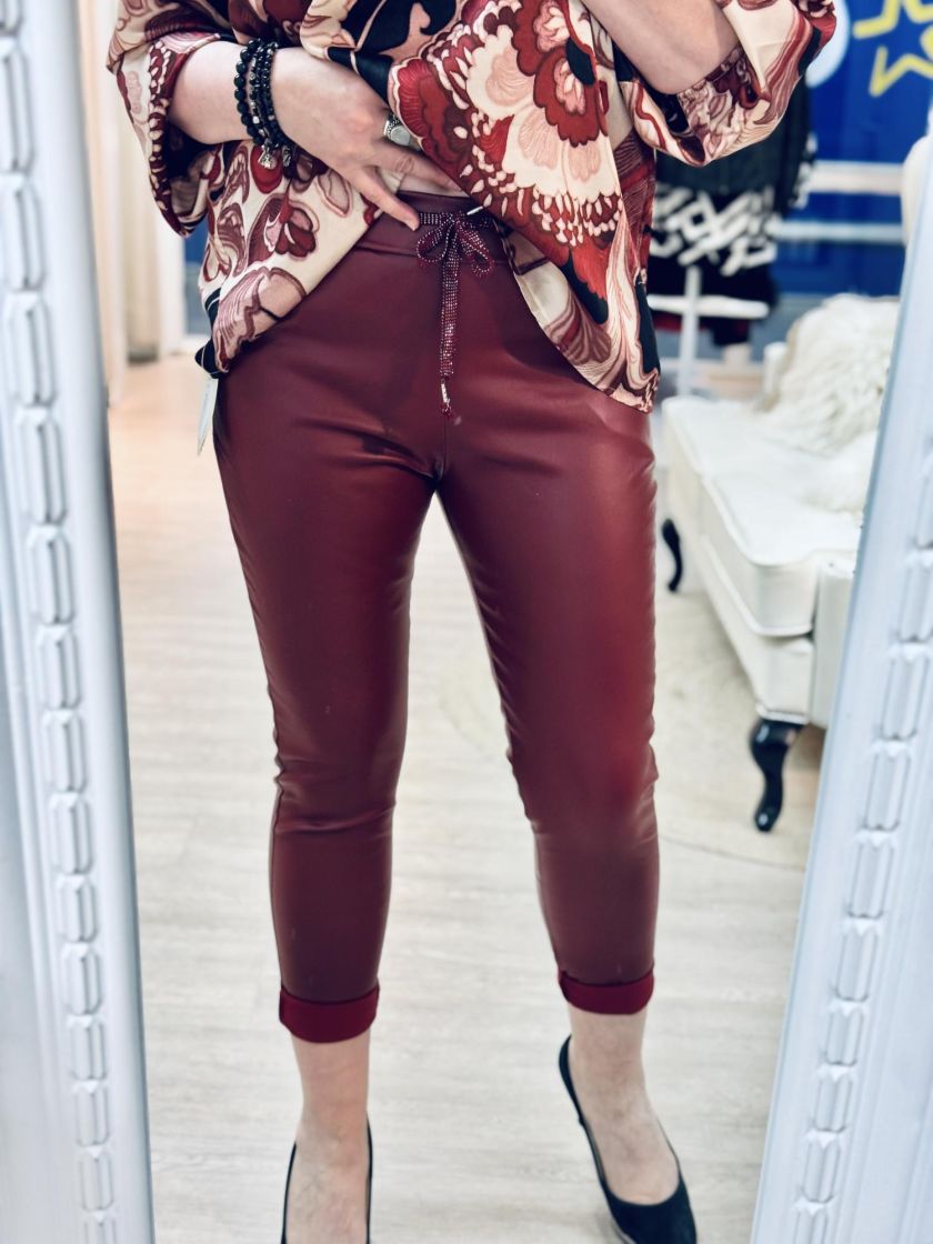 New Collection joggerit liukasta ja kivan siftaavaa nakhajäljitelmää. Joggerissa on joustovyötärö ilman vetoketjua ja vyötäröllä kiristysnauhat. Edestä löytyy taskut. Vyötärönkorkeus on normaali ja lahjetta kääntämällä voi säädellä pituutta. Mitoitus on siro, joten tarkistathan mitat. Yhden koon malli noin 36-40 kokoisille.