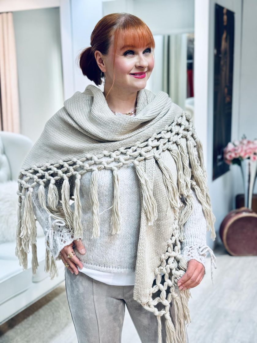 New Collection kolmiohuivi upeilla hapsuilla. Materiaali on pehmeää ja hieman paksumpaa.