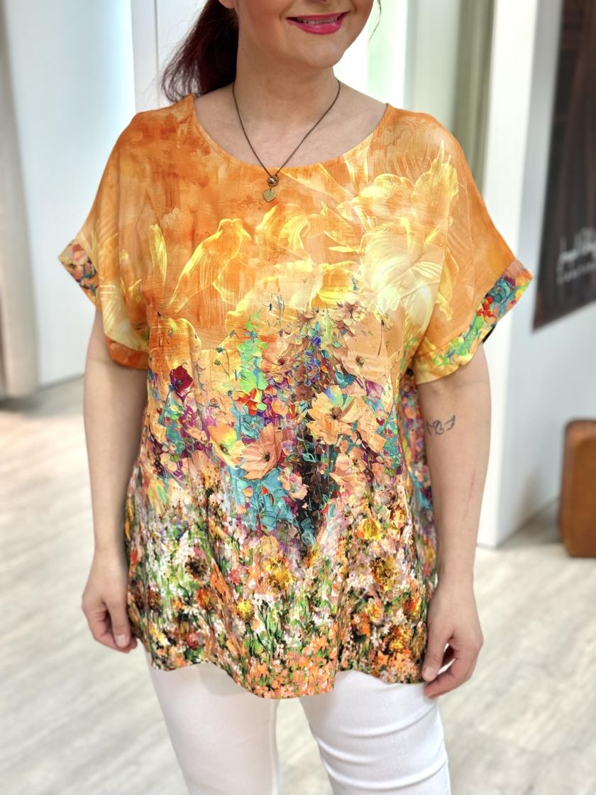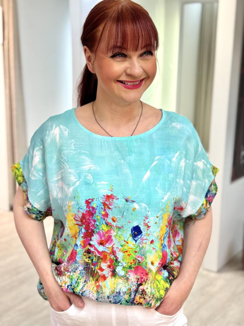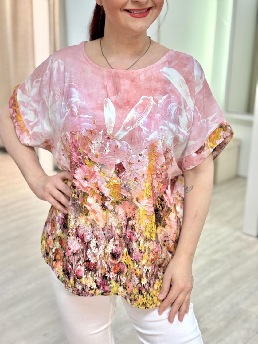New Collection kaunis kukkapusero. Materiaali ohutta ja miellyttävää viskoosia. Malli hieman pidempi. Yhden koon malli noin 36-42 kokoisille. Tarkistathan mitat.