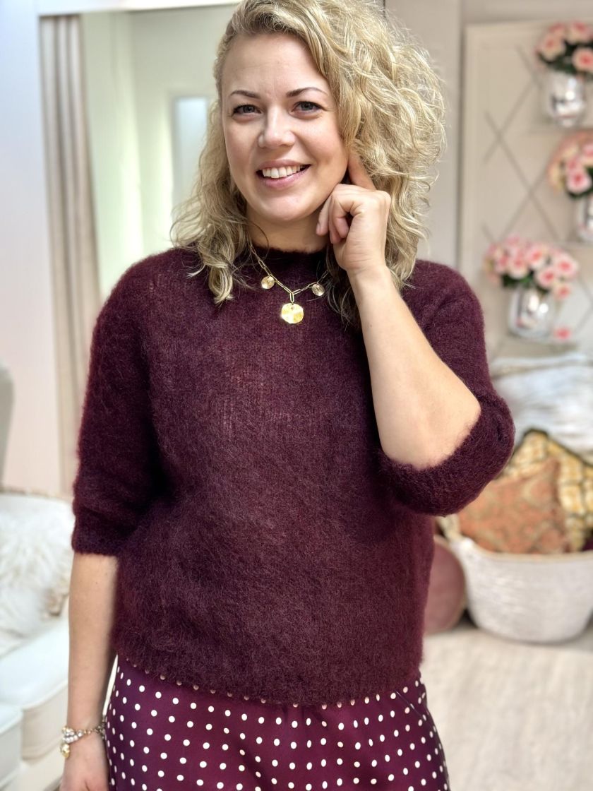New Collection ihanan pehmeä ja pörröinen neulepusero kidmohairia. Puserossa on sievä lyhyt hiha ja resorit pääntiellä, helmassa ja hihansuussa. Yhden koon malli noin 36-40 kokoisille.
