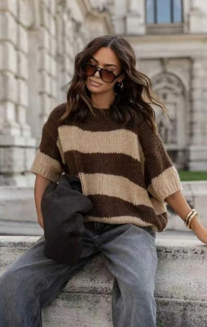 New Collection pehmeä neulepusero lyhyellä hihalla. Puserossa on reilut raidat ja kolme väriä valittavissa. Hihansuussa, helmassa ja pääntiellä ryhtiä antaa resorit. Yhden koon malli ja vastaa noin 38-42 kokoisille.