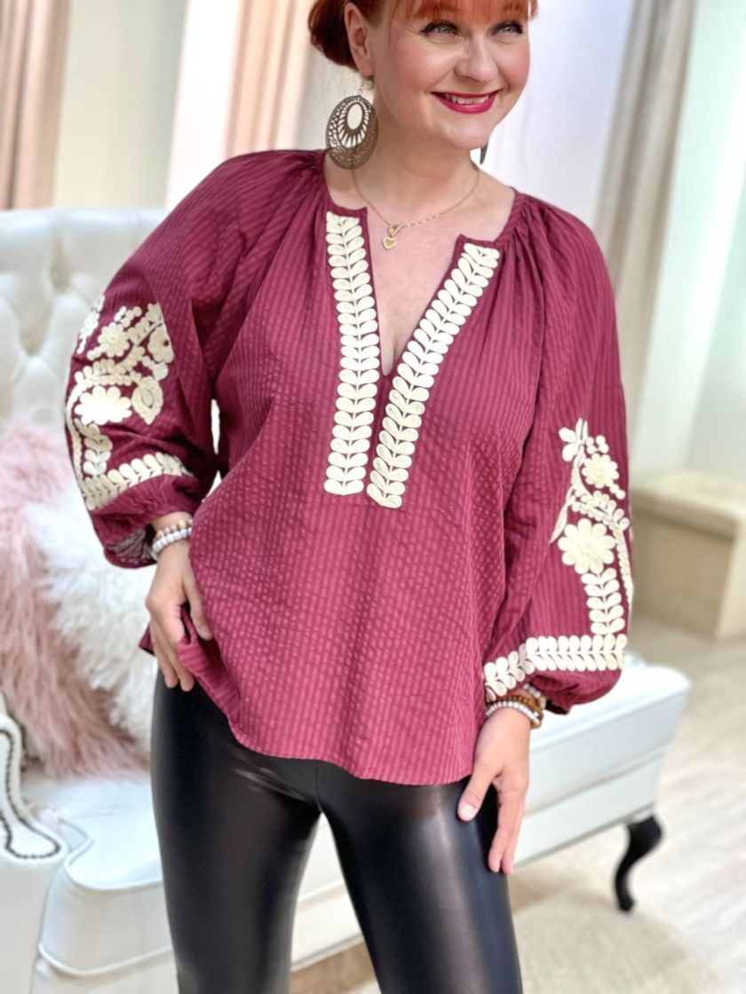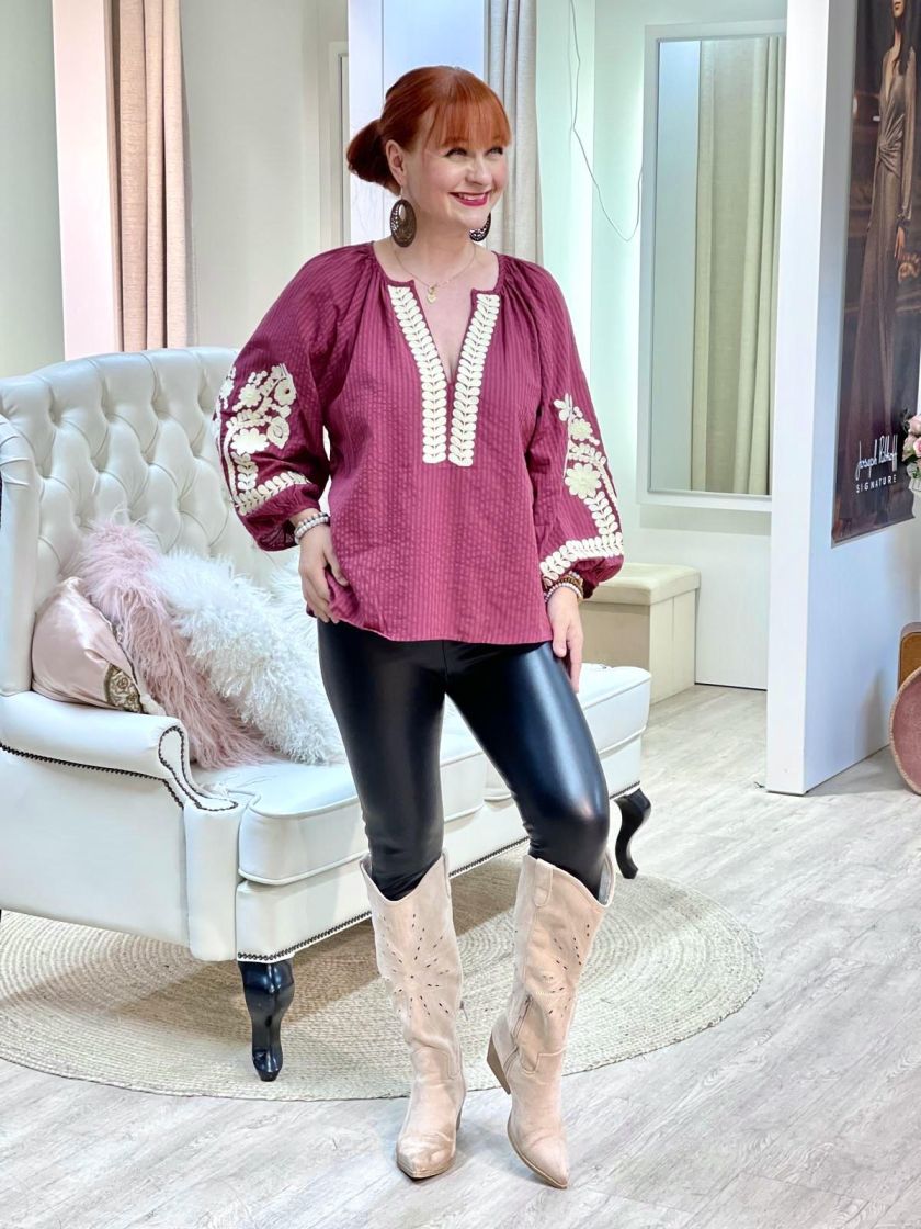 New Collection kevyt ja ohut puuvillapusero. Mallissa on reilut pussihihat raglanmallilla ja kankaassa kiva raidoitus. Puserossa on makeat bohohenkiset koristelut ja avoin pääntie. Malli on väljä ja reilu.