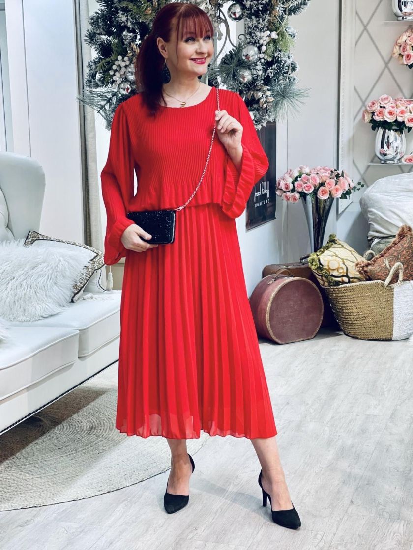 New Collection kauniisti pliseerattu sifonkimekko. Mekossa on kaksi kerrosta, jossa sifonki liehuu kauniisti yläosan päällä. Vyötäröllä muotoa tuo kuminauha ja hiha on kivan väljä. Alla on hyvin joustava vuori ohutta viskoositrikoota. Yhden koon malli noin 38-42 kokoisille.